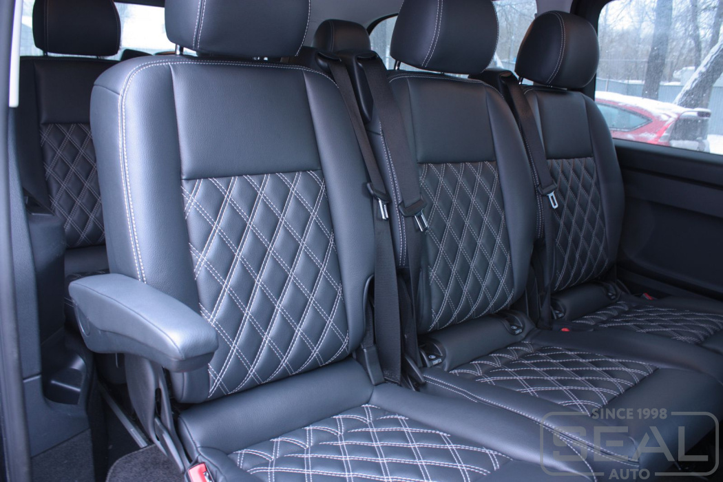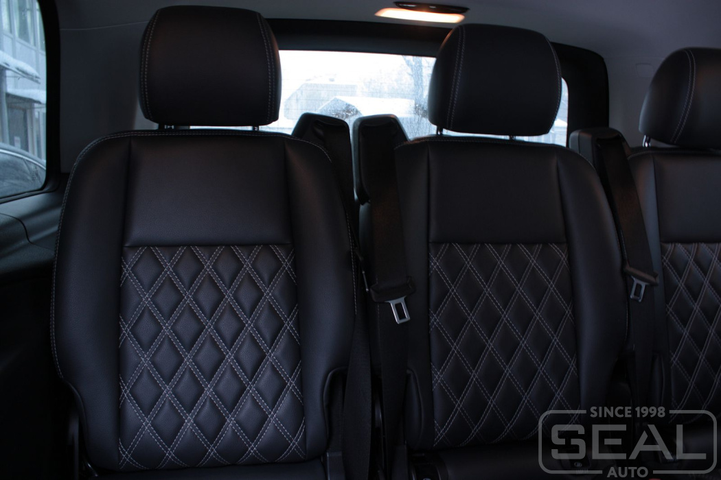 Работа по пошиву салона для автомобиля Мерседес Вито (кузов W447, 8-ми местный салон)