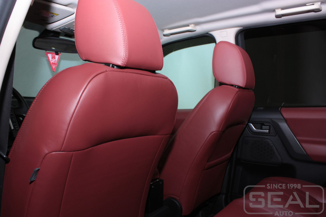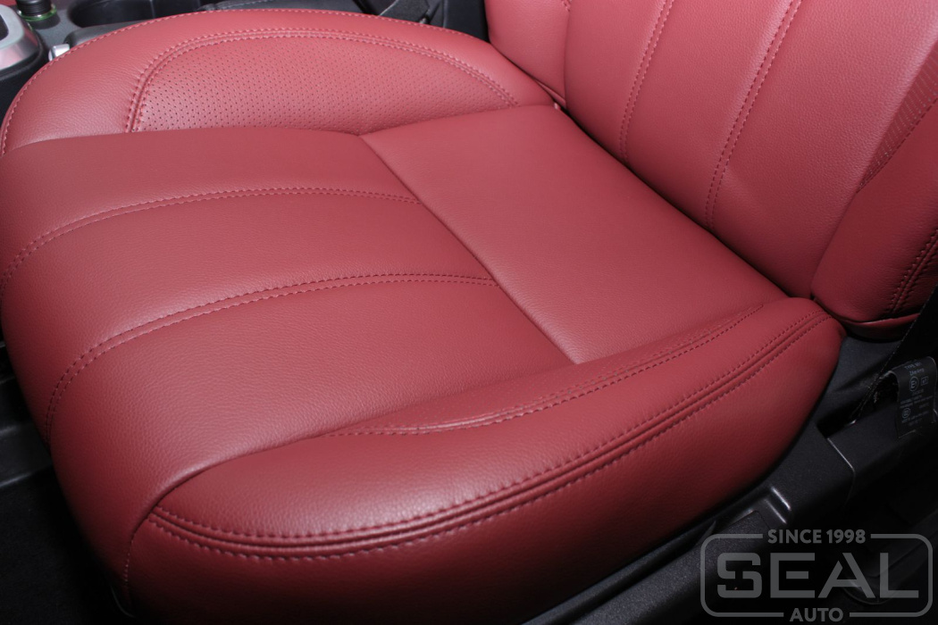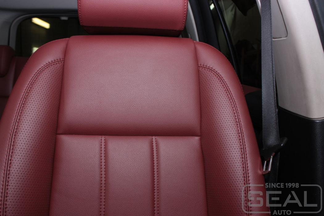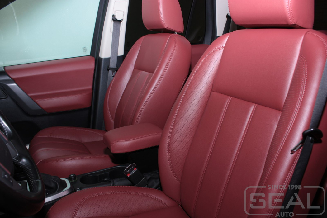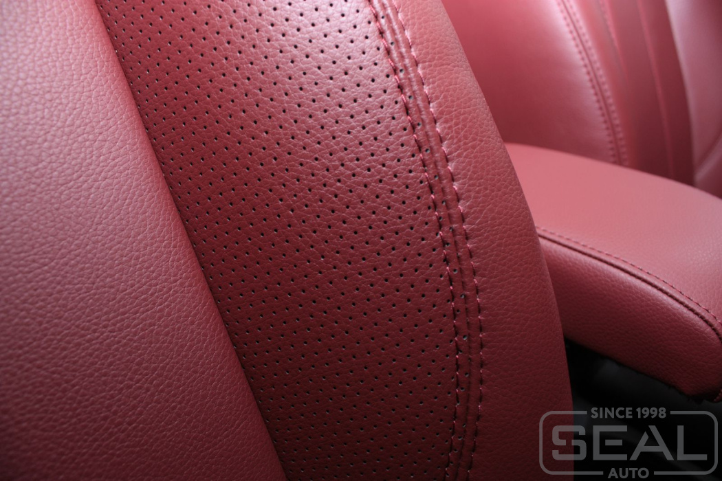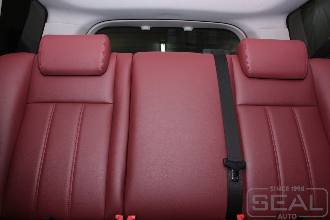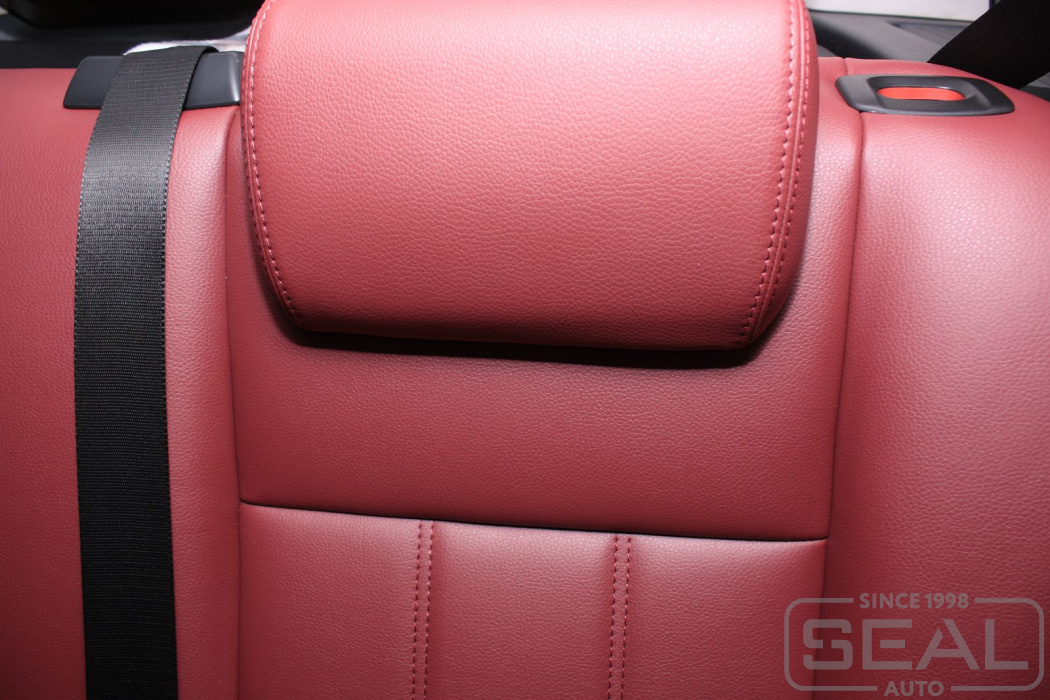 Перетяжка кожей сидений, обтяжка всех подголовников и переднего подлокотника - 82.000 рублей.