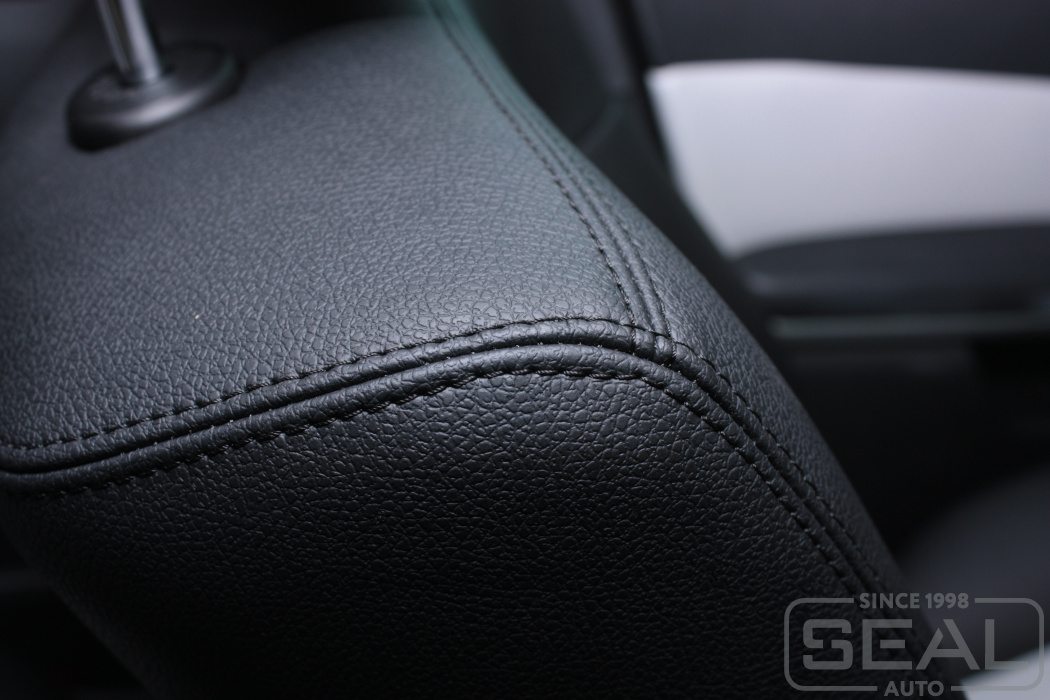Перетяжка кожей сидений, подголовников (5 штук) и заднего подлокотника - 84.000 рублей.