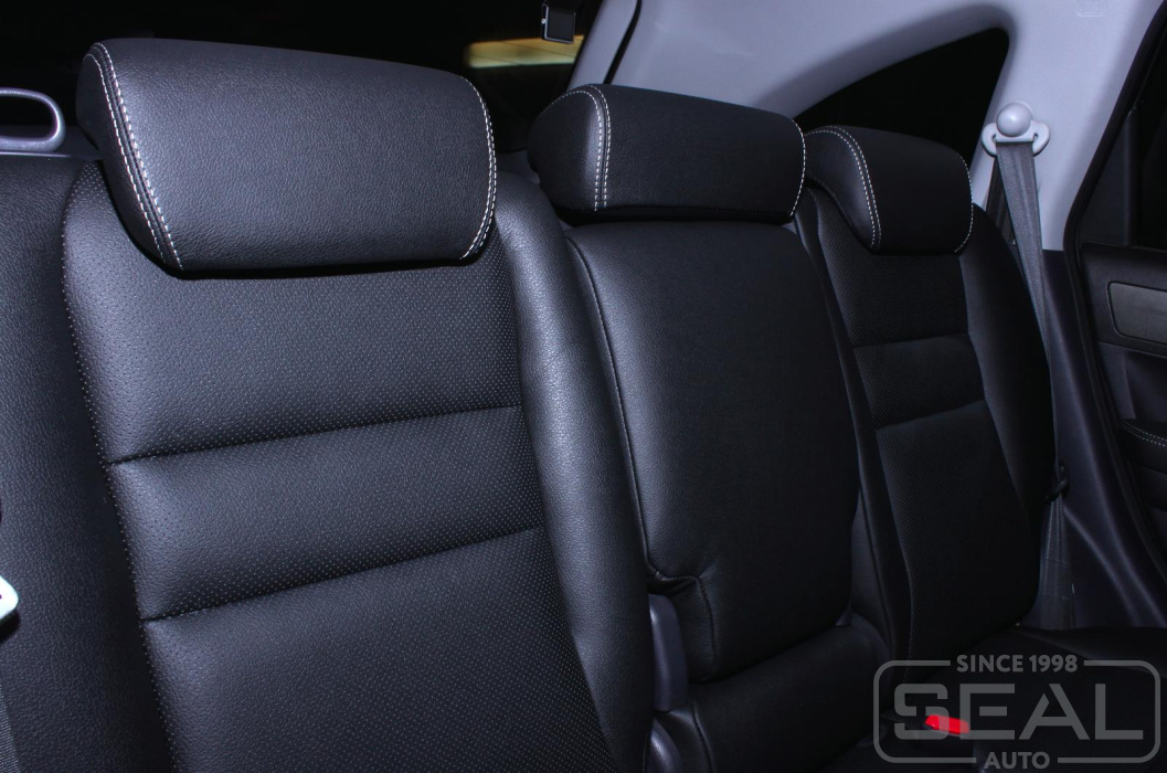Перетяжка кожей сидений, подголовников, переднего подлокотника - 84.000 рублей.