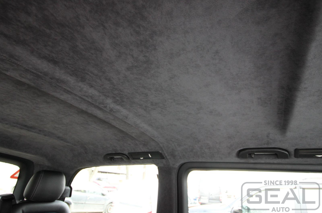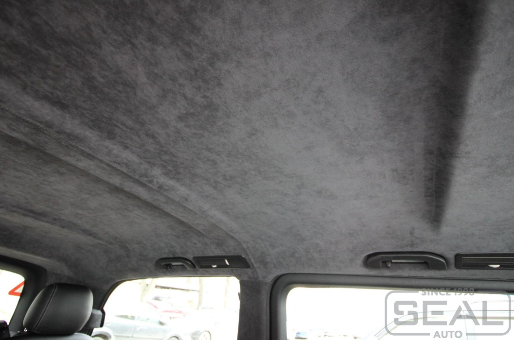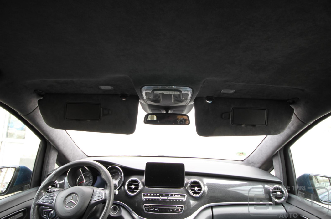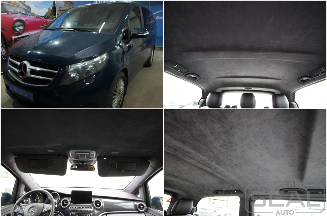 Перетяжка потолка оригинальной алькантарой на Мерседес V класс