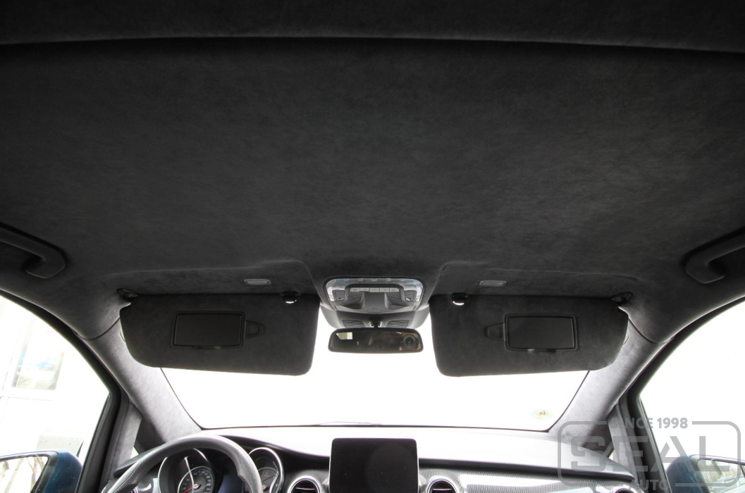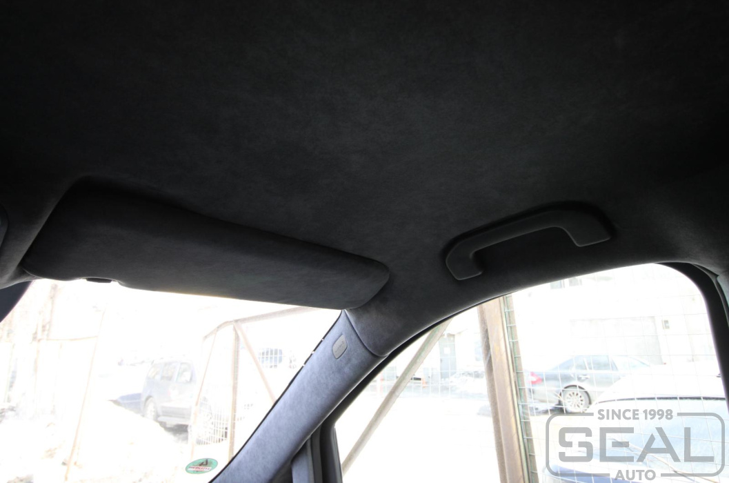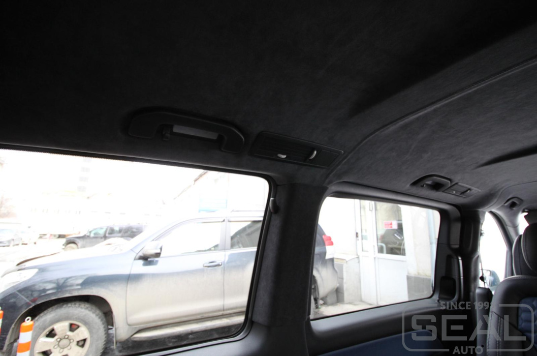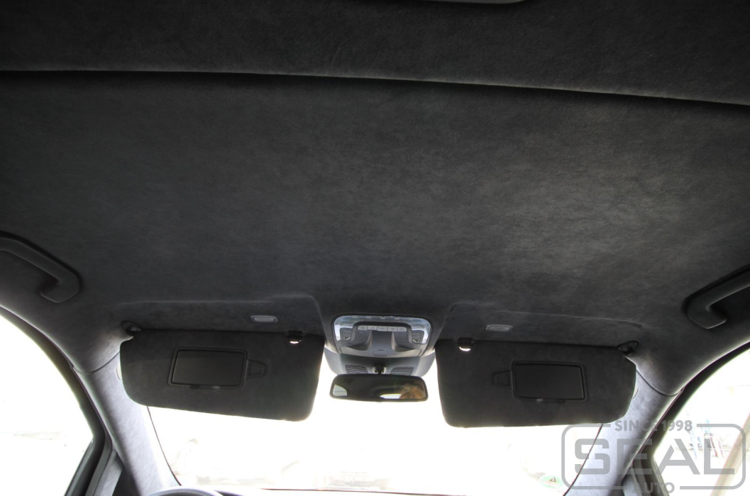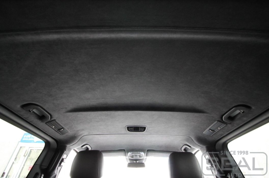 Перетяжка потолка оригинальной алькантарой на Мерседес V класс