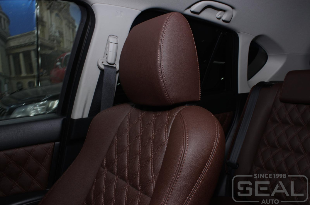 Перетяжка сидений, подголовников (5 штук), подлокотников (2 штуки) - 83.000 рублей.