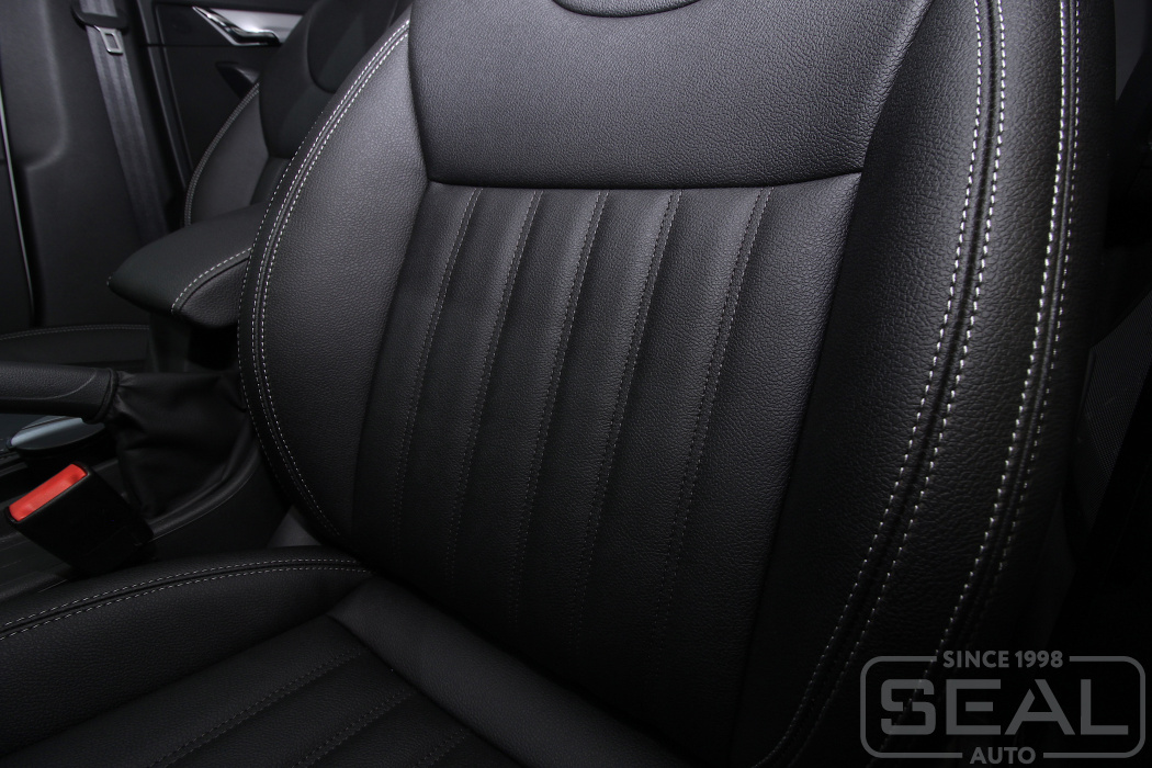 Перетяжка сидений, подголовников и переднего подлокотника - 82.000 рублей.