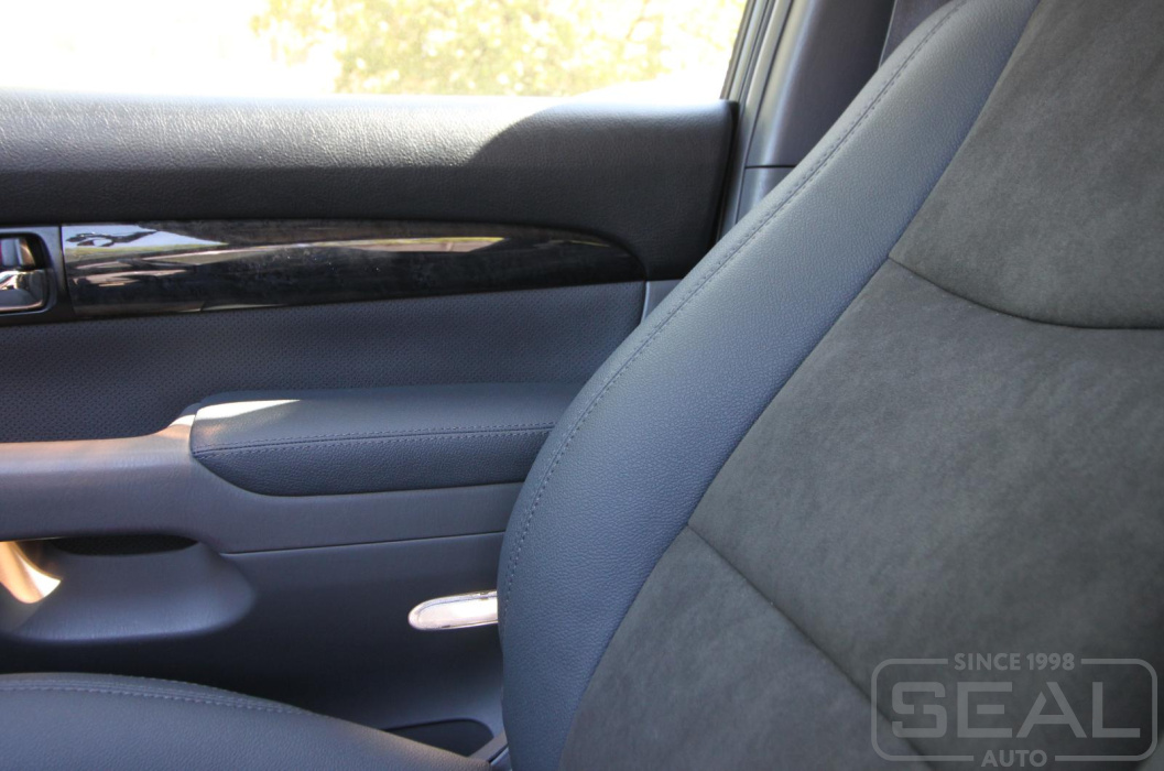 Перетяжка дверных карт и подлокотников дверей со швом (комплект) - 38.000 рублей.