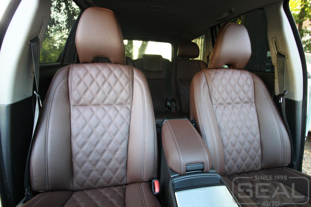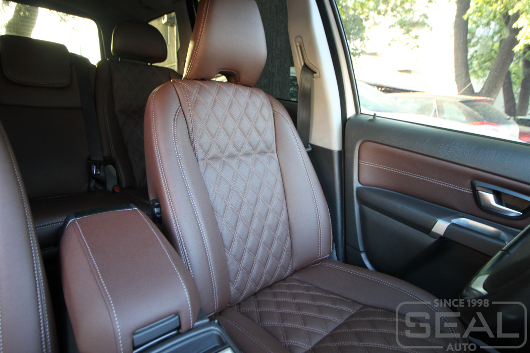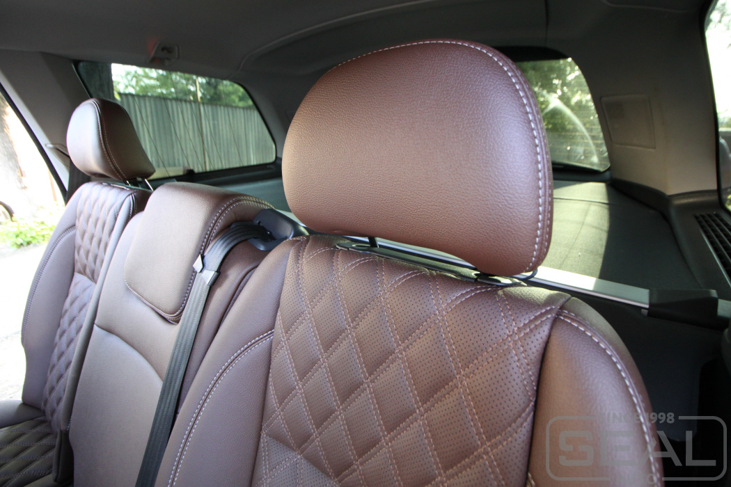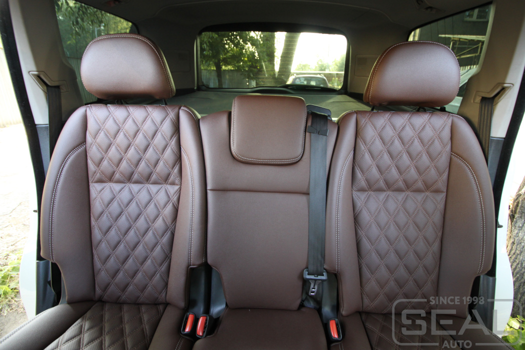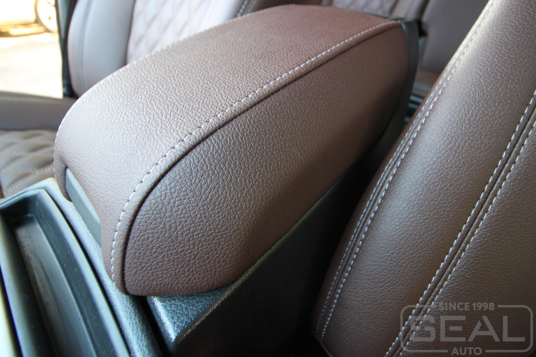 Перетяжка сидений, подголовников, обивка переднего подлокотника - 85.000 рублей.
