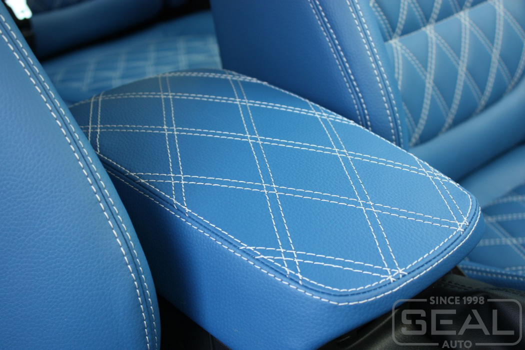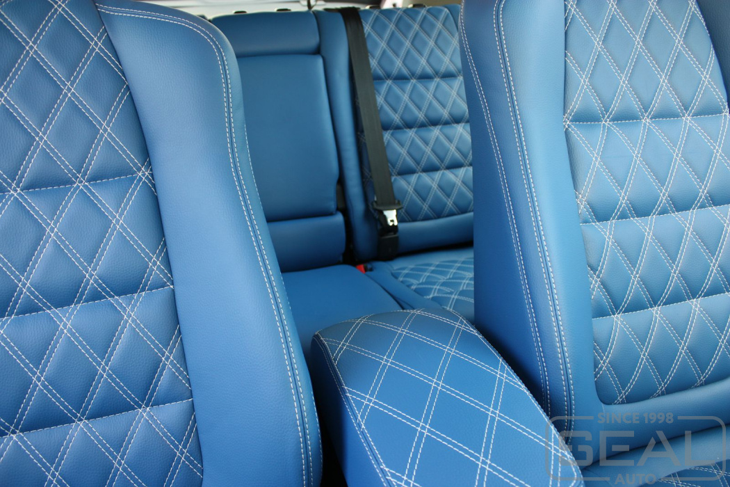 Перетяжка сидений, обивка подголовников и переднего подлокотника - 83.000 рублей.