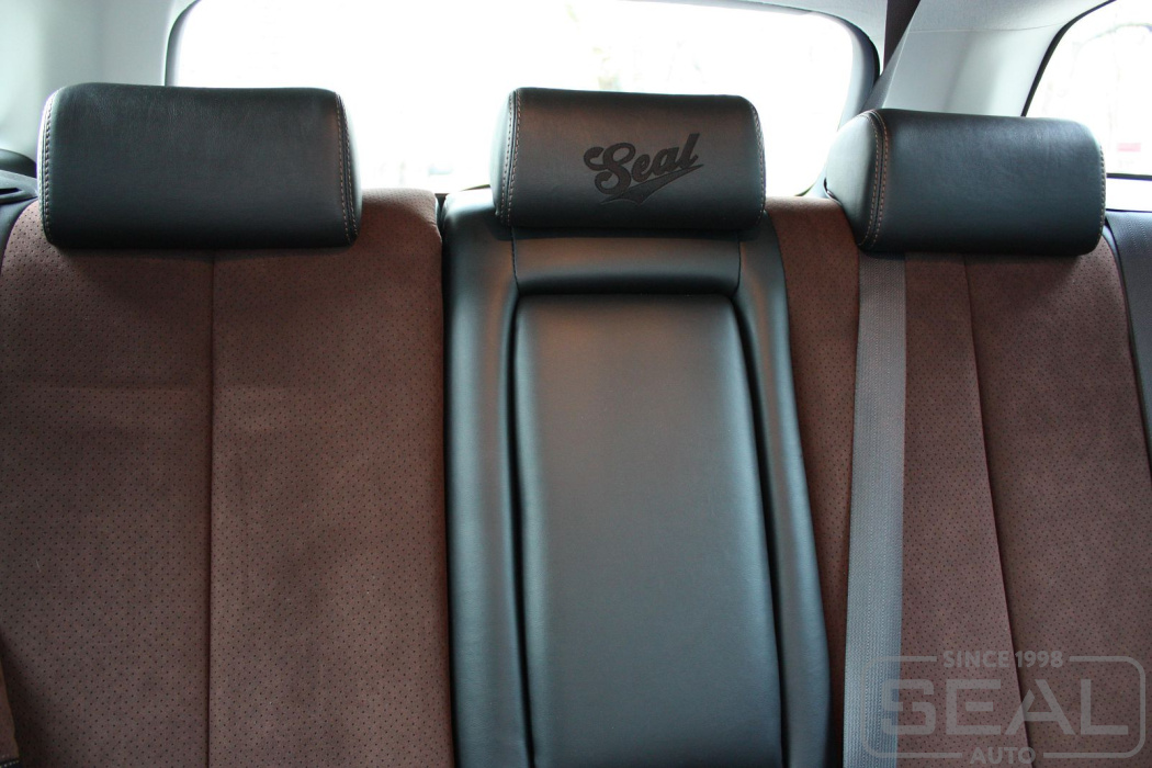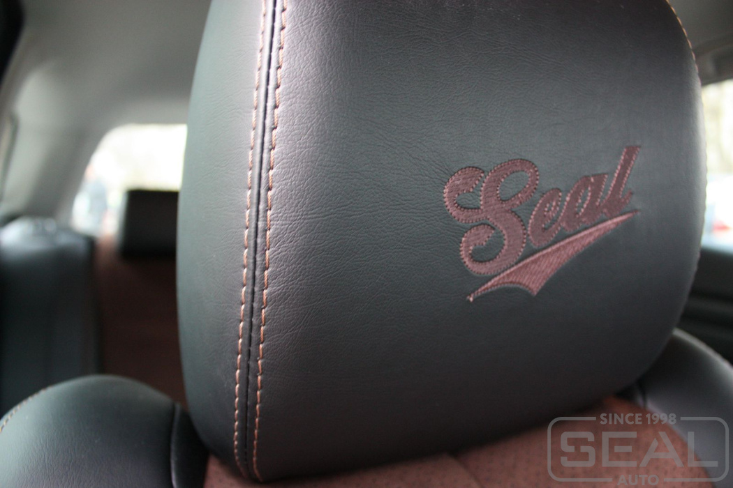 Перетяжка кожей сидений, всех подголовников и подлокотника - 83.000 рублей.
