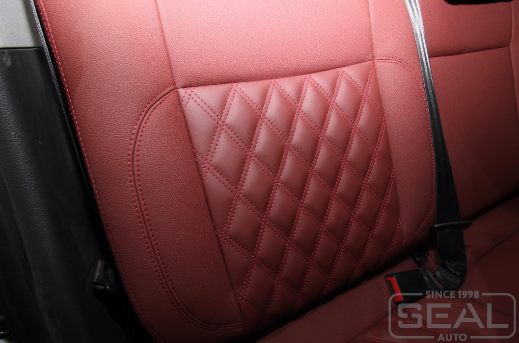 Перетяжка сидений, всех подголовников и переднего подлокотника - 84.000 рублей.