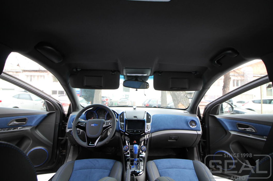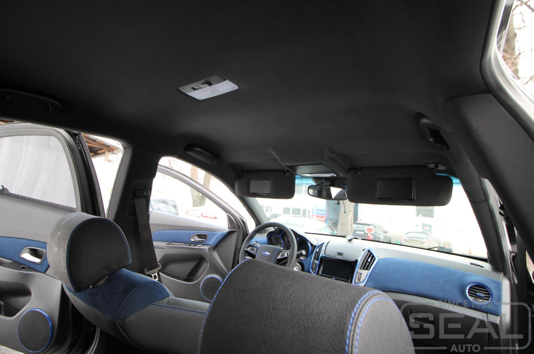 Работа по перетяжке потолка автомобиля Шевроле Круз
