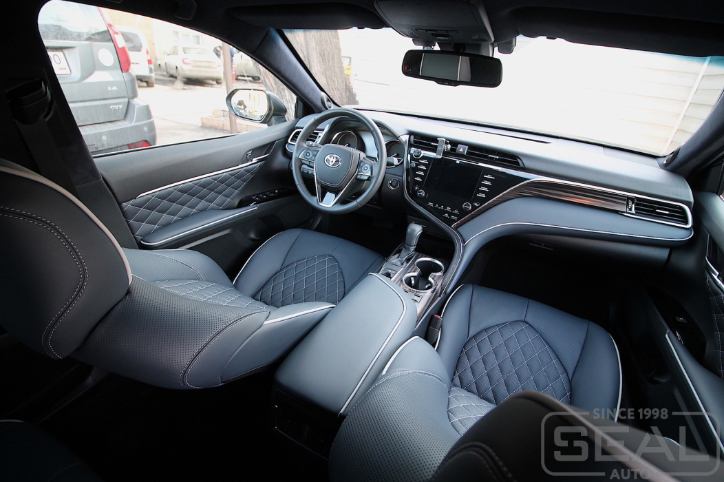 Перетяжка накладок торпедо автомобиля Тойота Камри (кузов XV70).