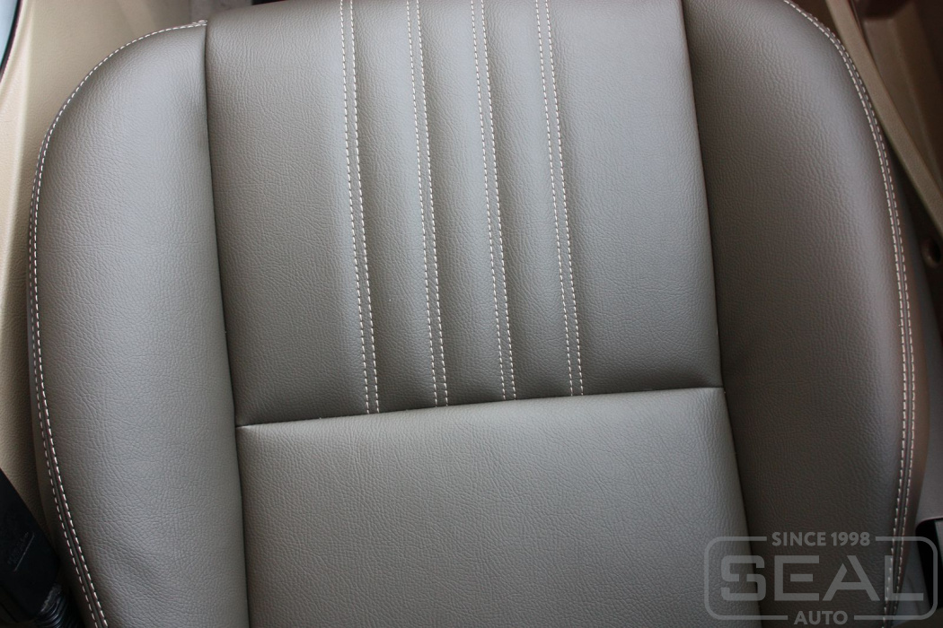 Обивка кожей сидений и подголовников -82.000 рублей.