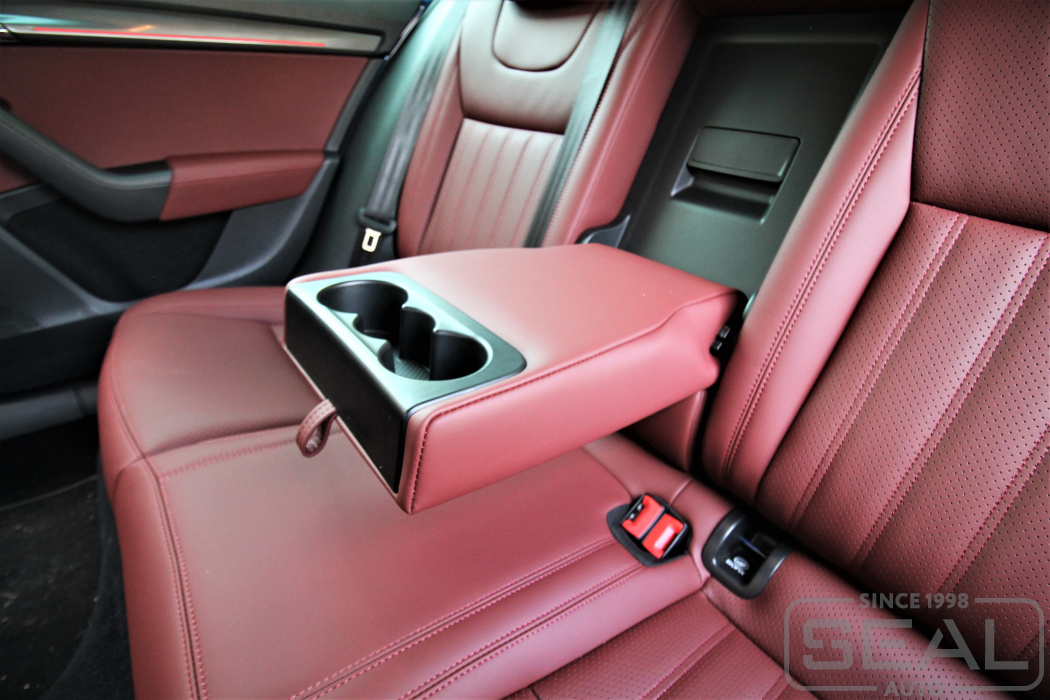 Перетяжка сидений, подголовников, переднего подлокотника и заднего подлокотника - 87.000 рублей.
