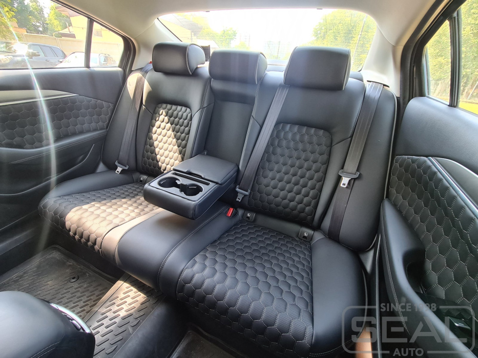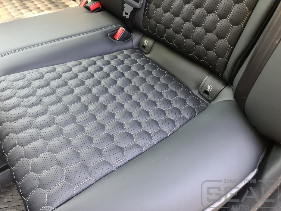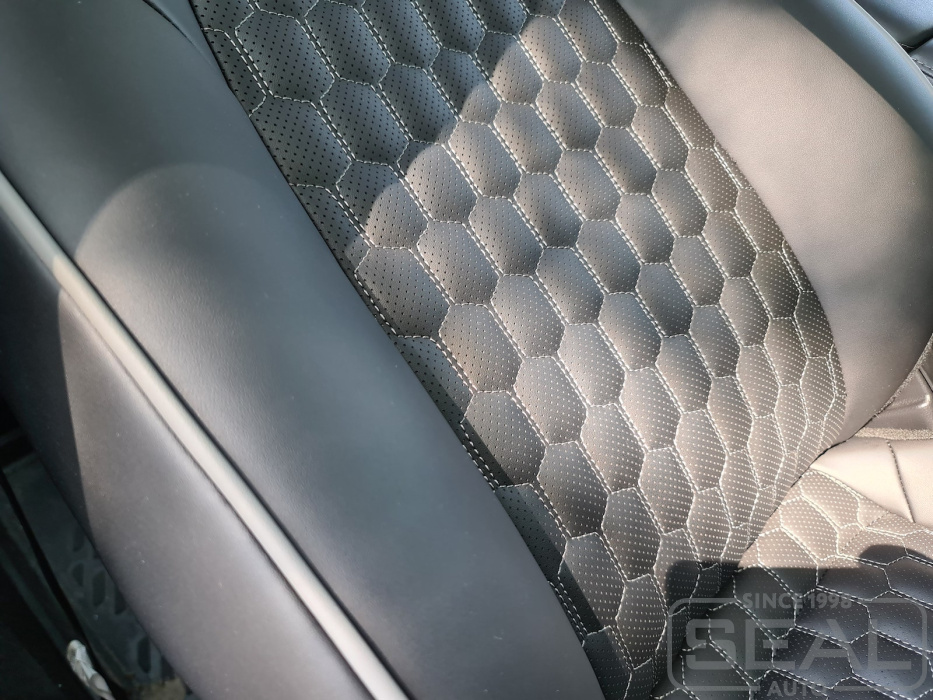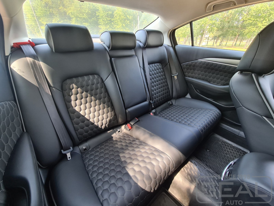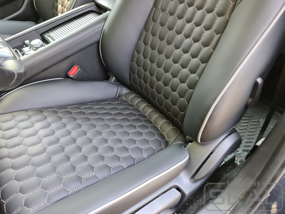 Перетяжка кожей сидений, всех подголовников и подлокотника - 88.000 рублей.