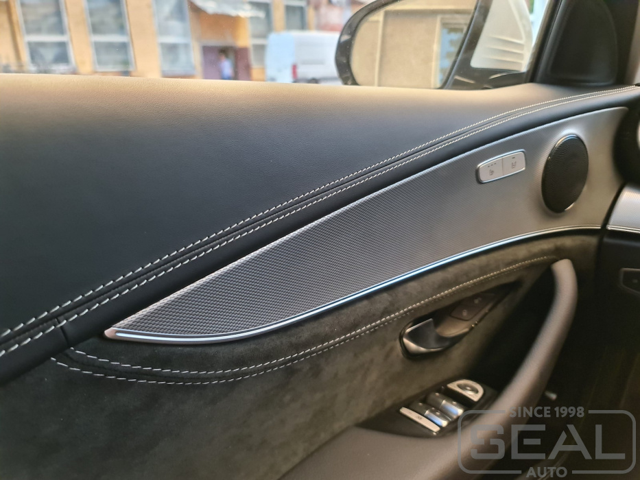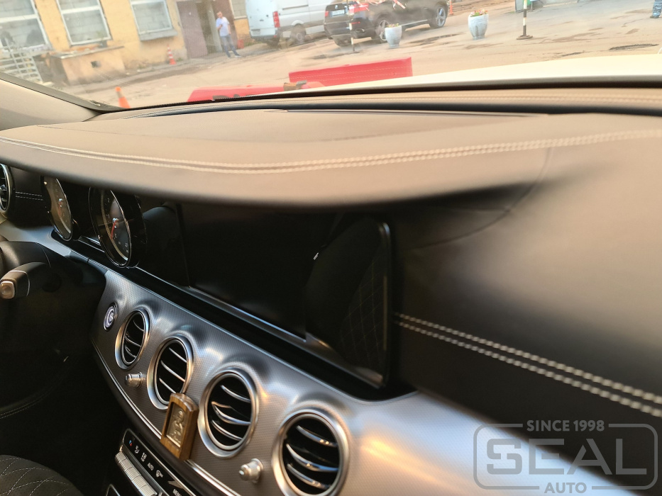 Работа по перетяжке торпедо и дверных панелей для Мерседес E-класс 213 кузов.
