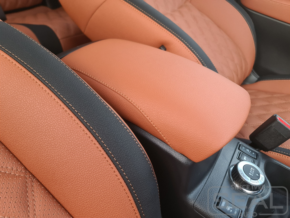 Перетяжка кожей сидений, подголовников, перетяжка подлокотника - 84.000 рублей.