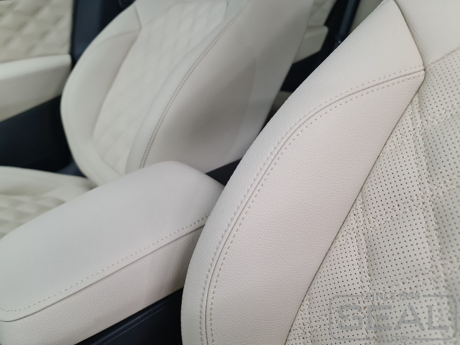 Перешив сидений, подголовников, обтяжка переднего подлокотника - 87.000 рублей.