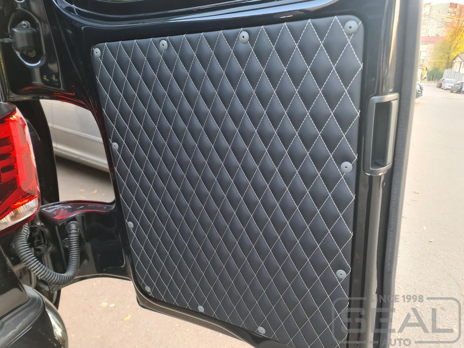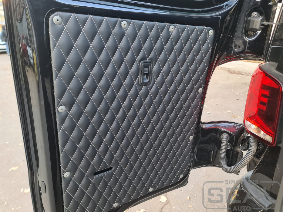 Перетяжка 2-х элементов задних дверей - 20.000 рублей.