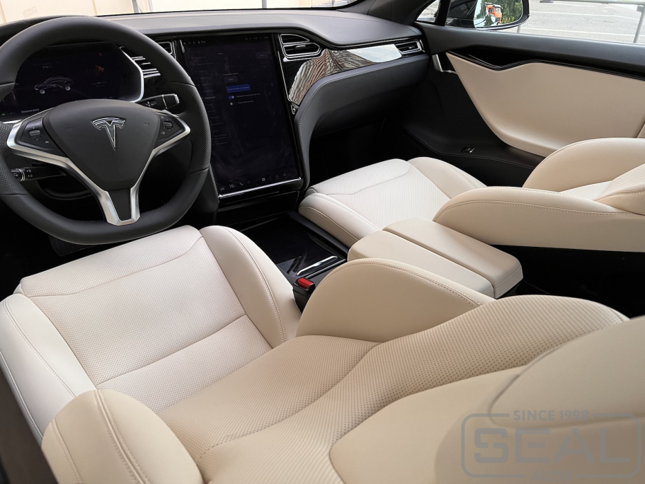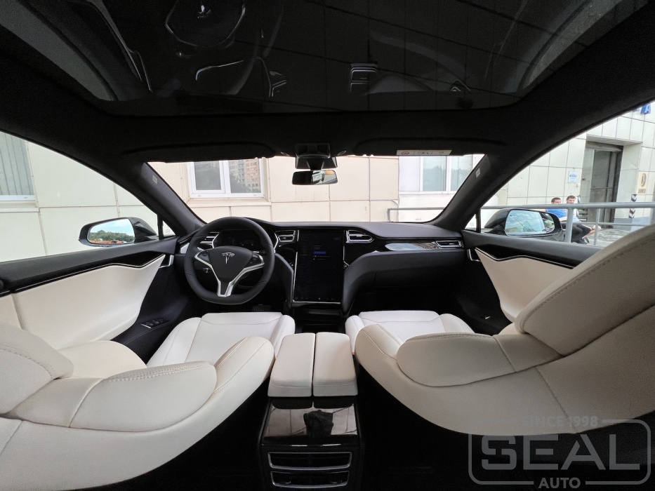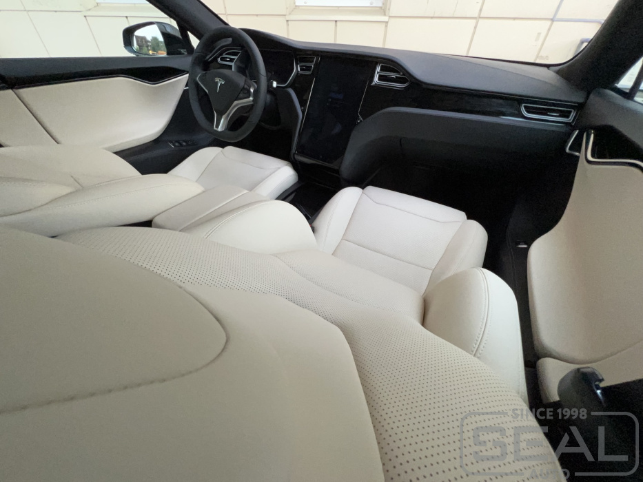 Видео по перетяжке салона Tesla Model S