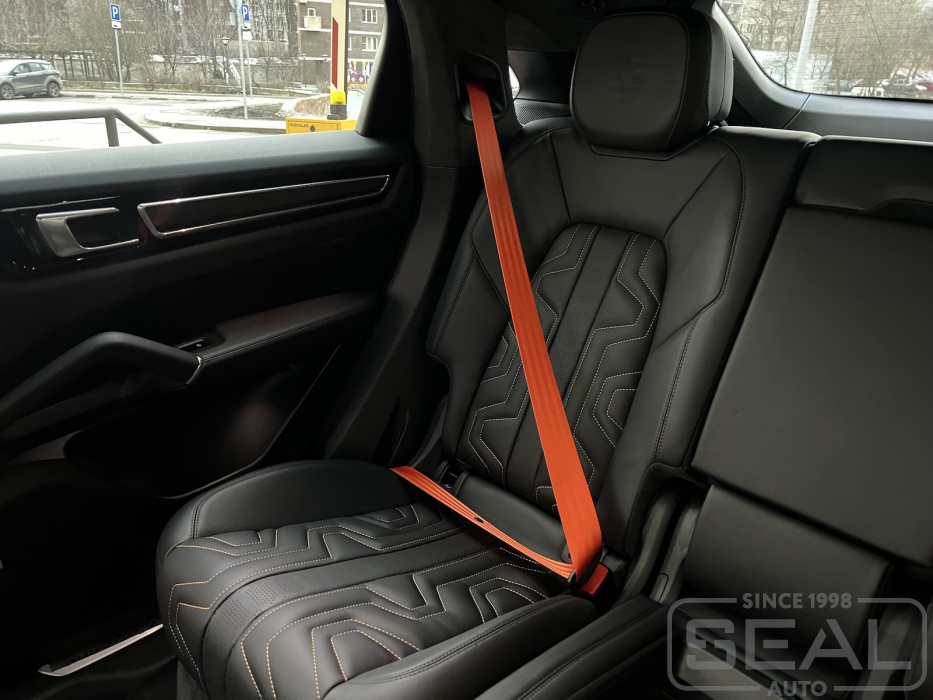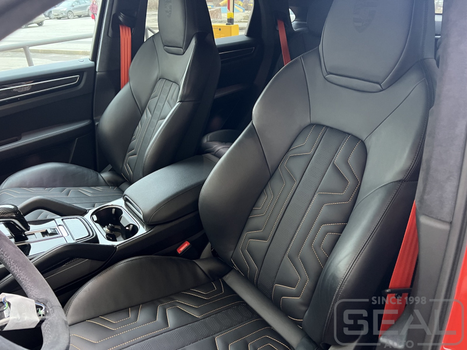 Проект по частичной перетяжке кресел и замене ремней в Porsche Cayenne.