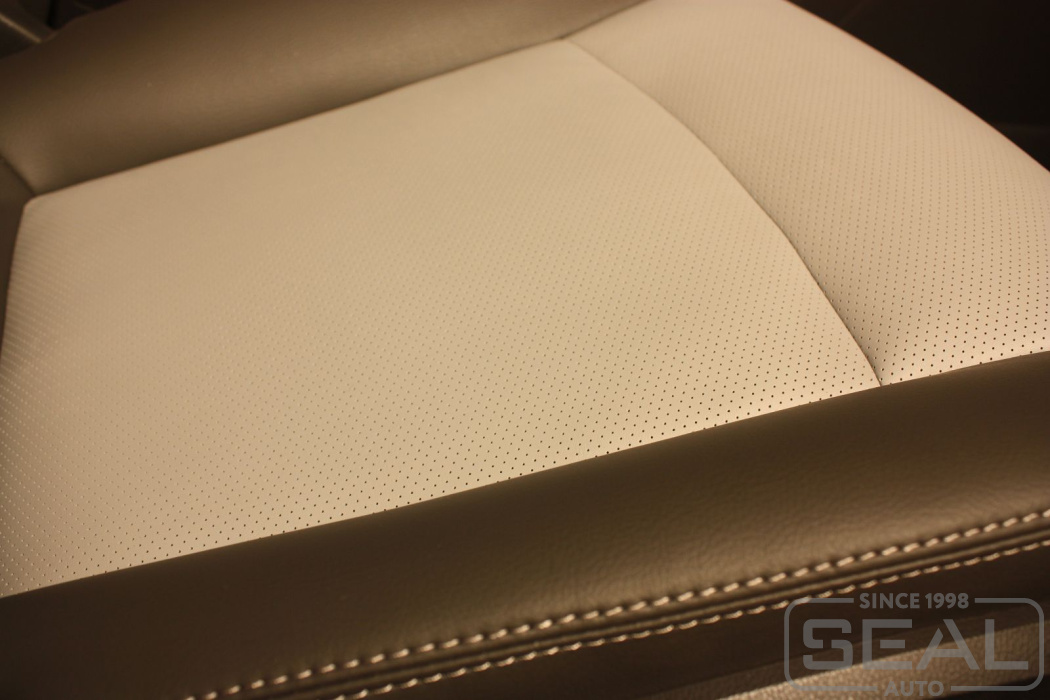 Перетяжка кожей сидений, обивка подголовников (5 шт), обшивка переднего подлокотника - 80.000 рублей.