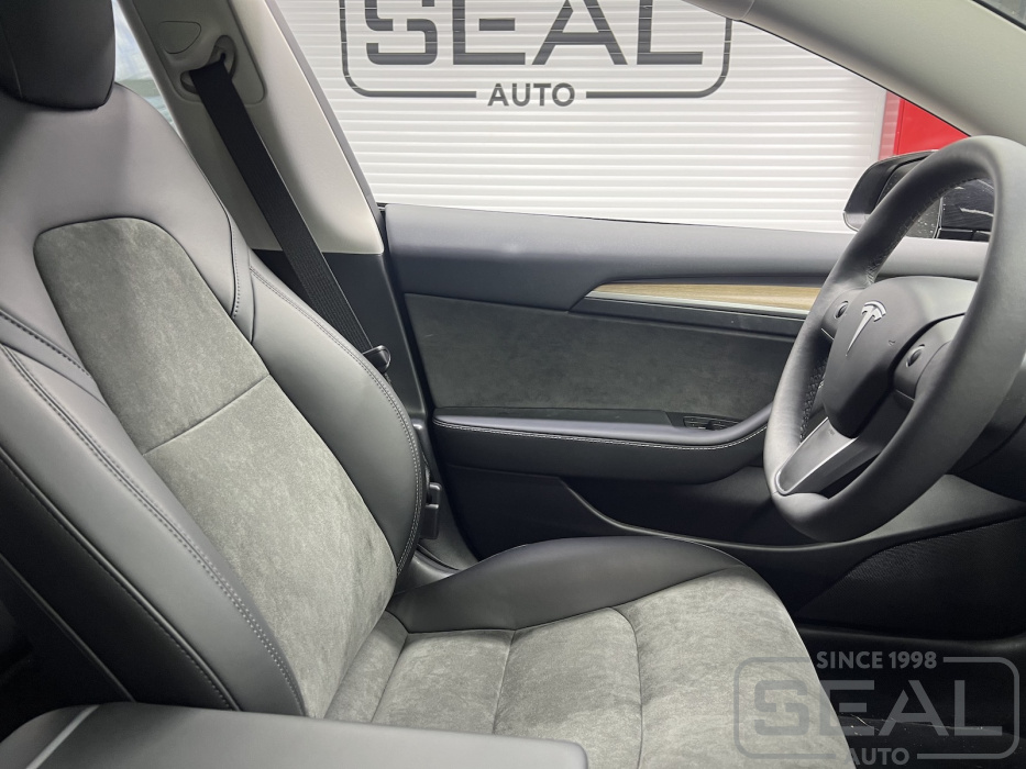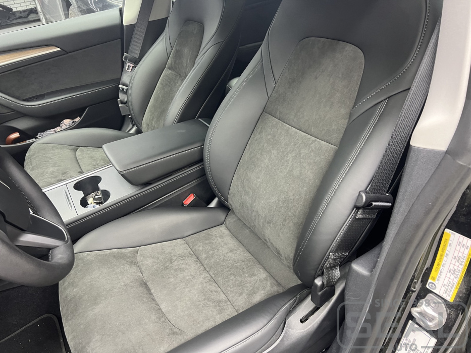 Работа по перешиву центральных частей передних сидений для Tesla Model 3.