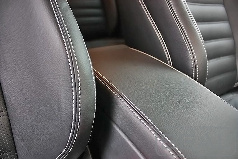 Перетяжка кожей сидений, переднего подлокотника и всех подголовников - 84.000 рублей.