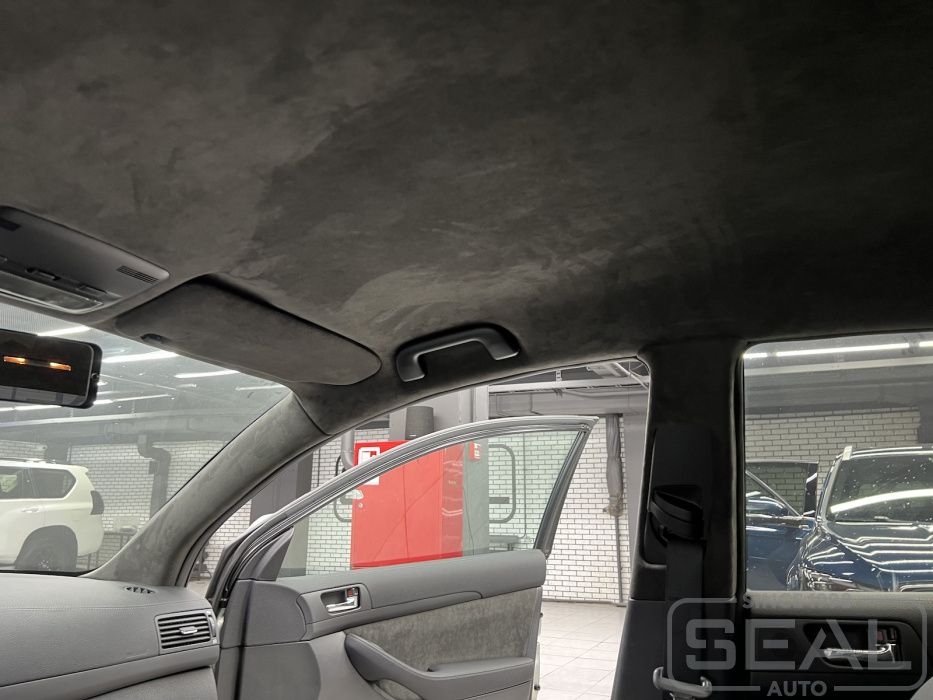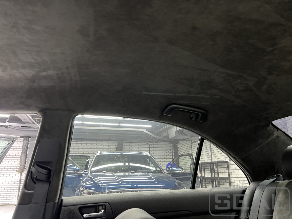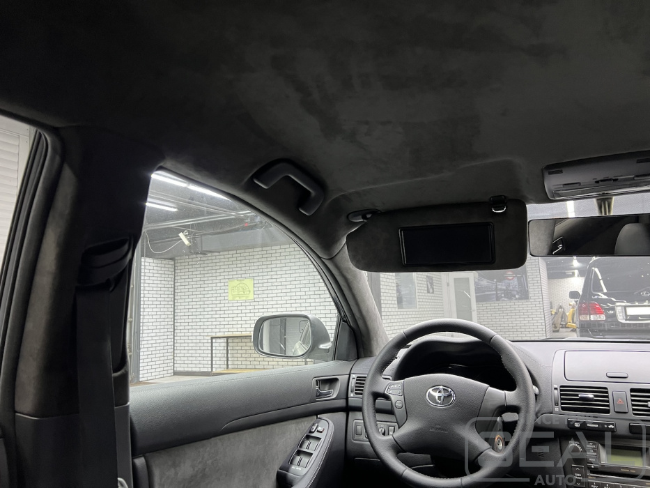 Проект по перетяжке потолка алькантарой на Тойота Авенсис.
