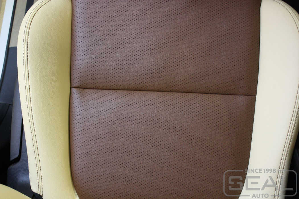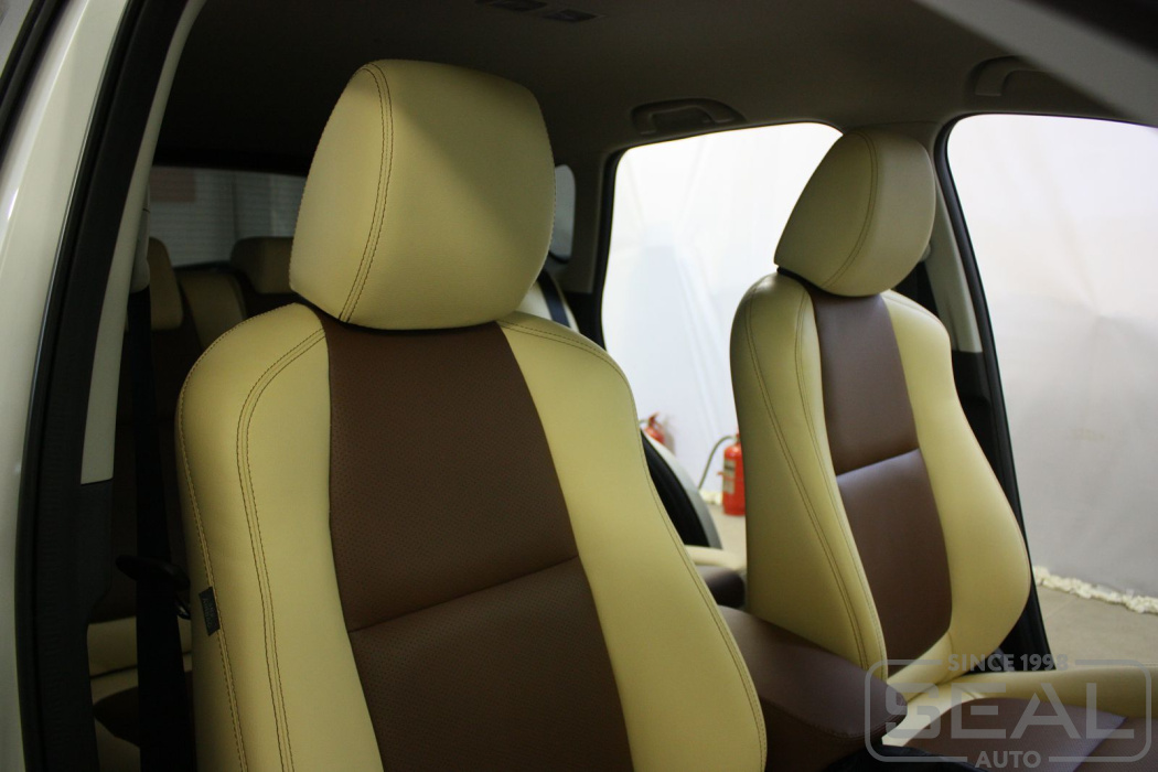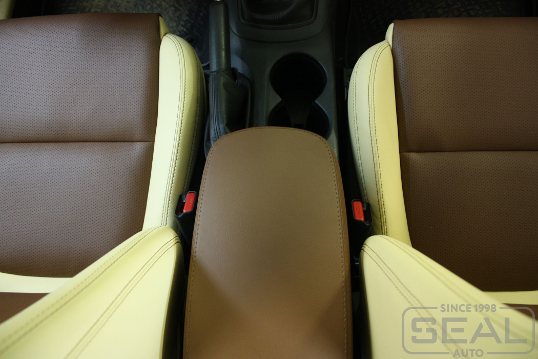 Перетяжка кожей сидений, всех подголовников и подлокотника - 83.000 рублей.