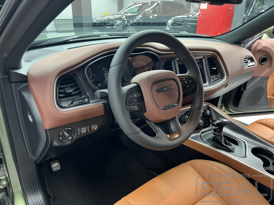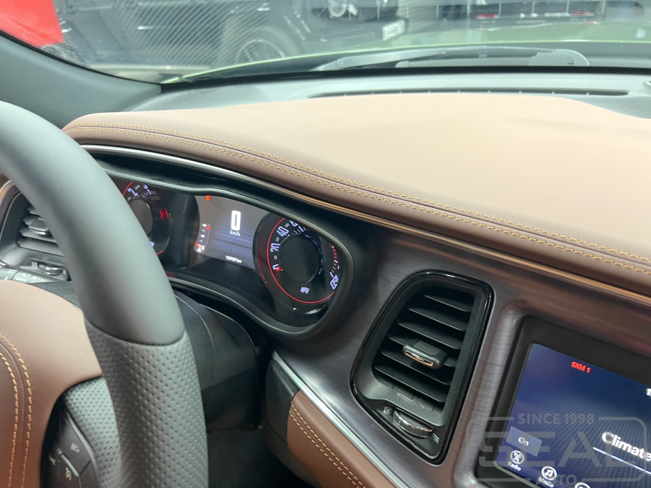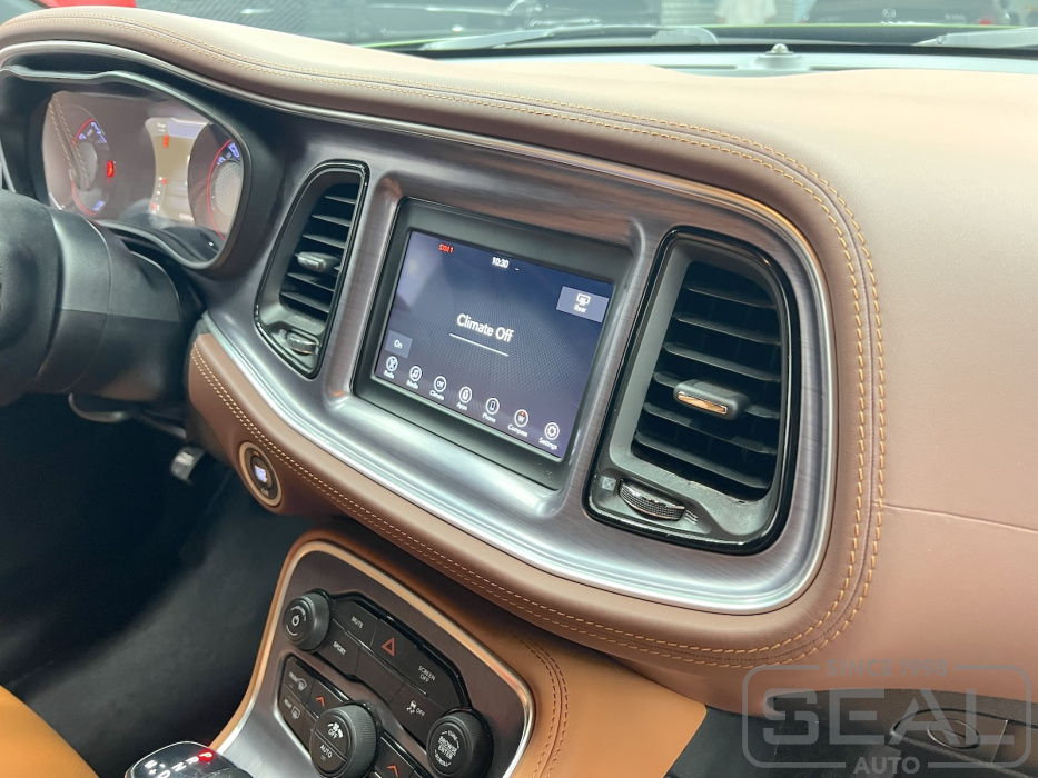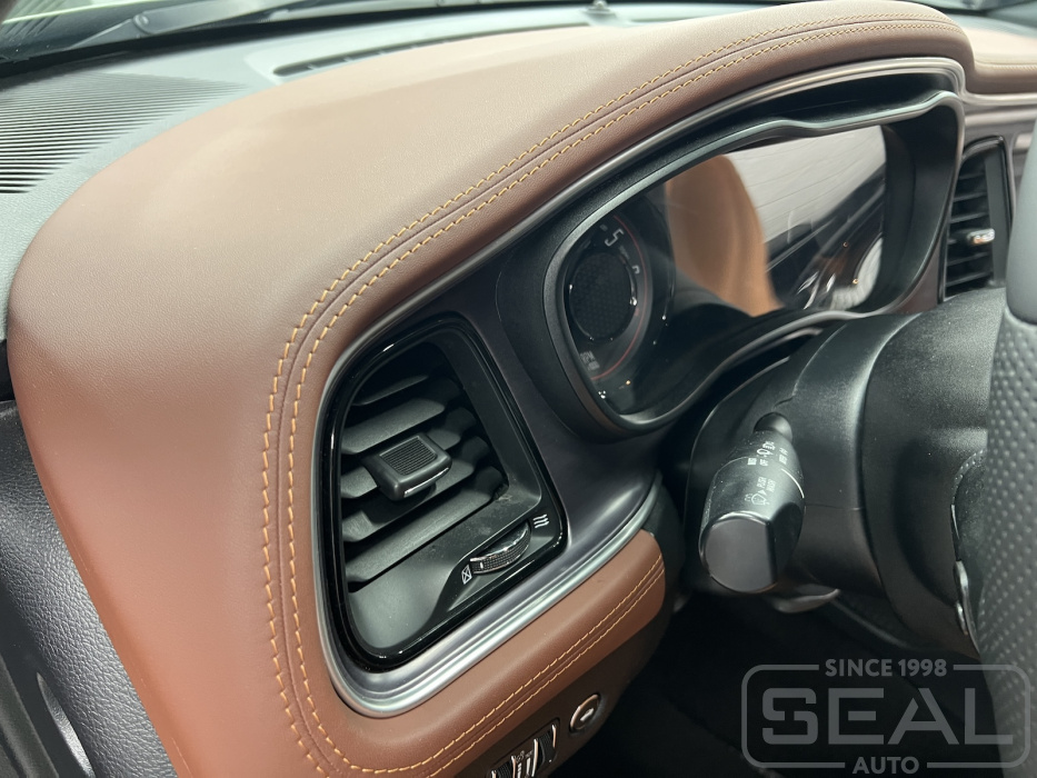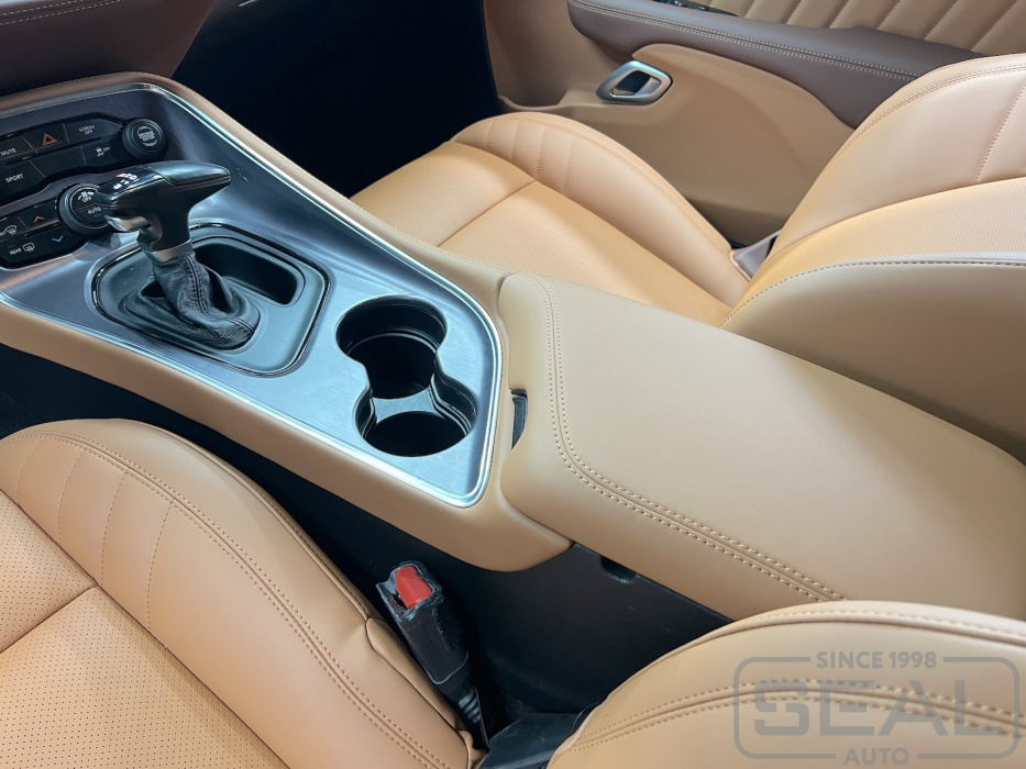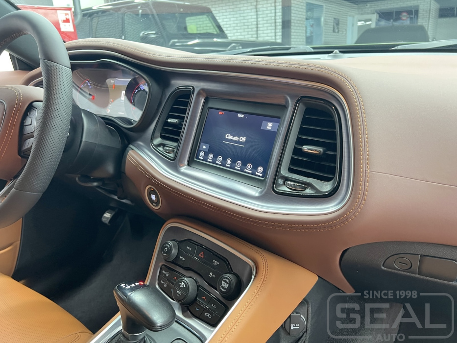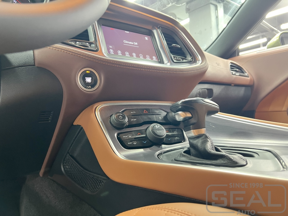 Проект по перетяжке торпедо, центральной консоли и дверных панелей для Додж Челленджер.