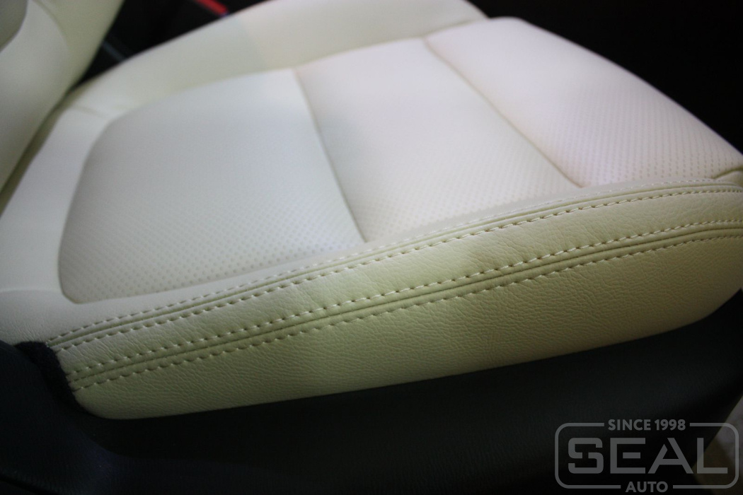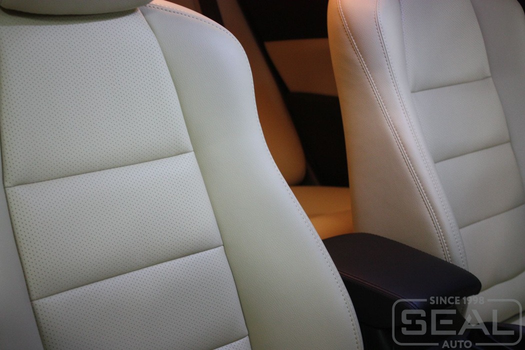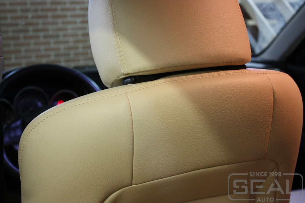 Перетяжка кожей сидений, всех подголовников и подлокотника - 83.000 рублей.