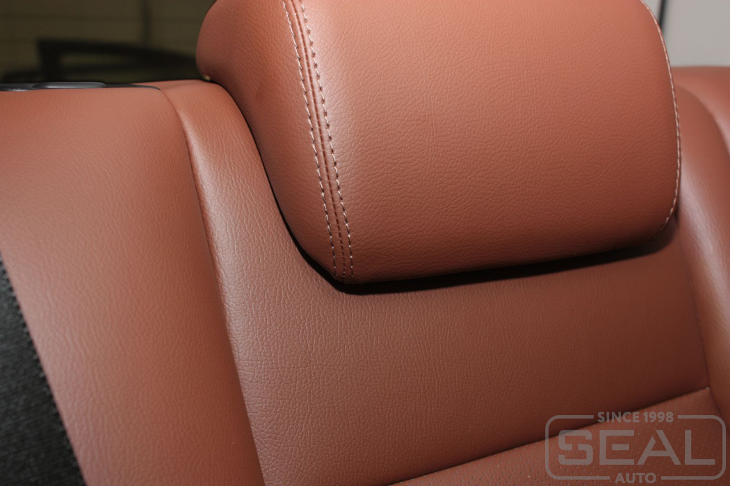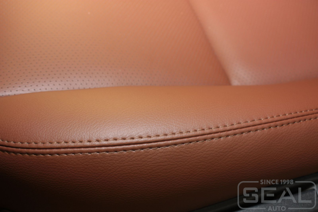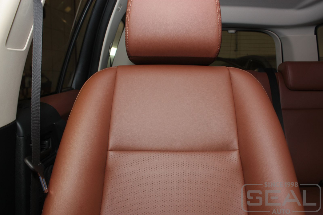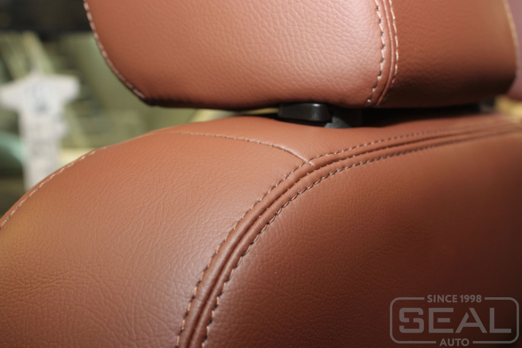 Перетяжка кожей сидений, подголовников - 82.000 рублей.