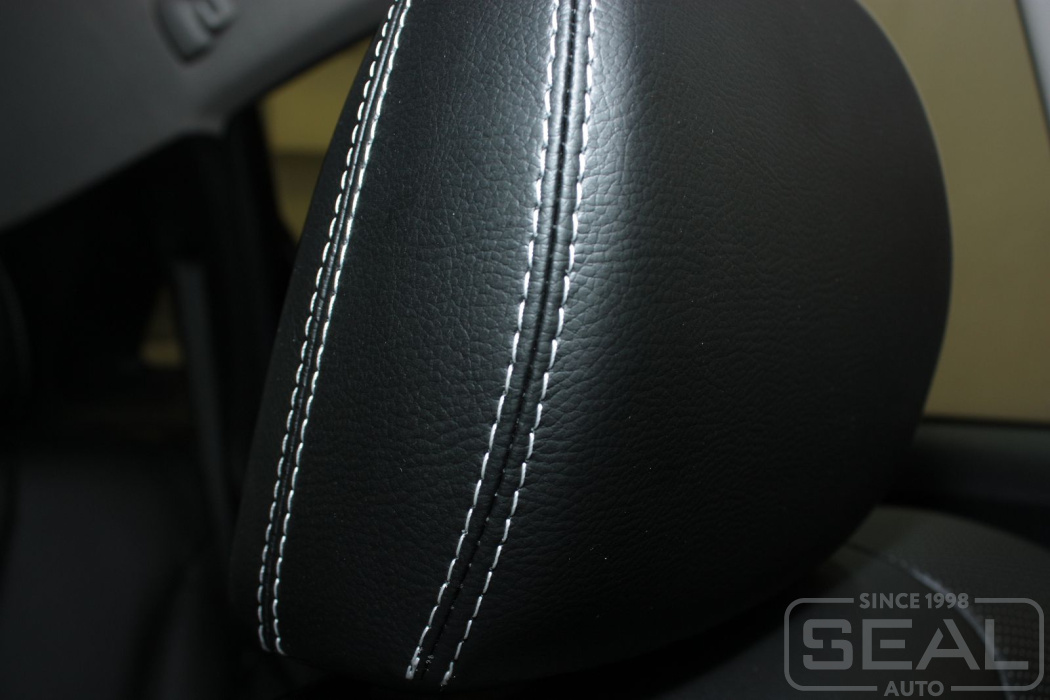 Перетяжка кожей сидений, всех подголовников - 85.000 рублей.