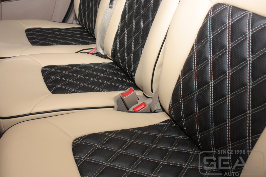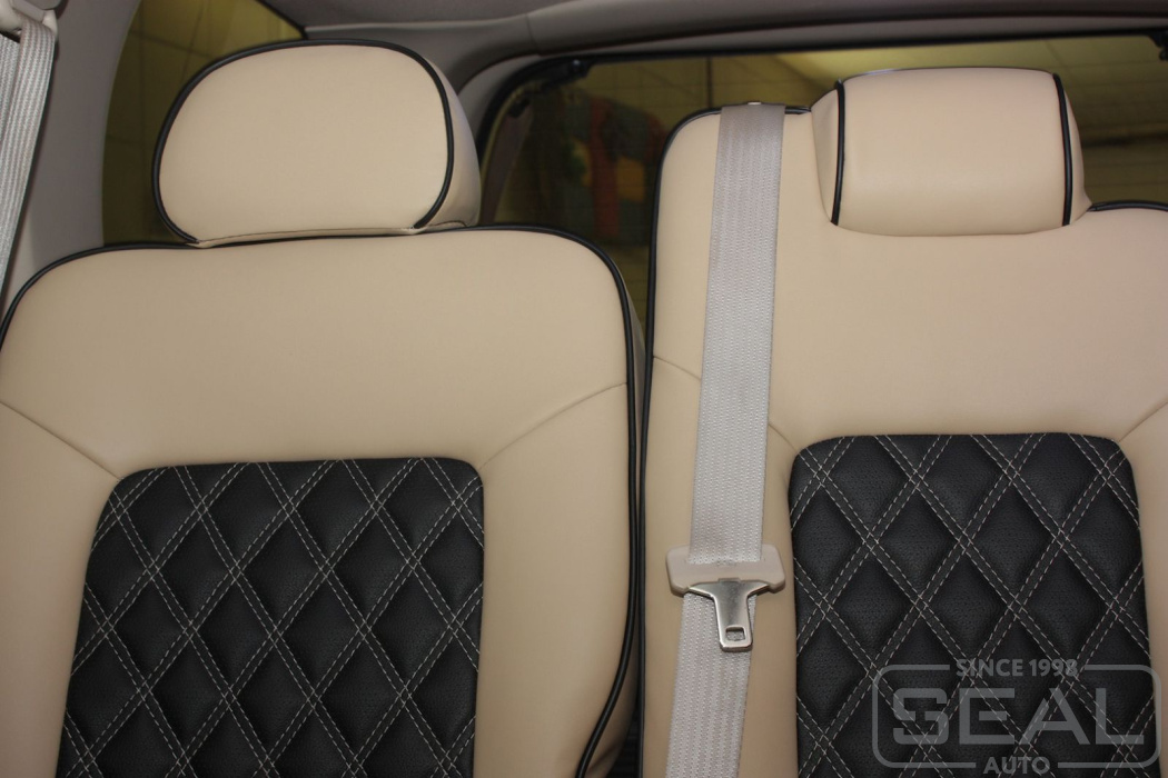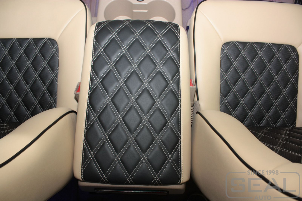 Перетяжка сидений, подголовников и переднего подлокотника - 98.000 рублей.