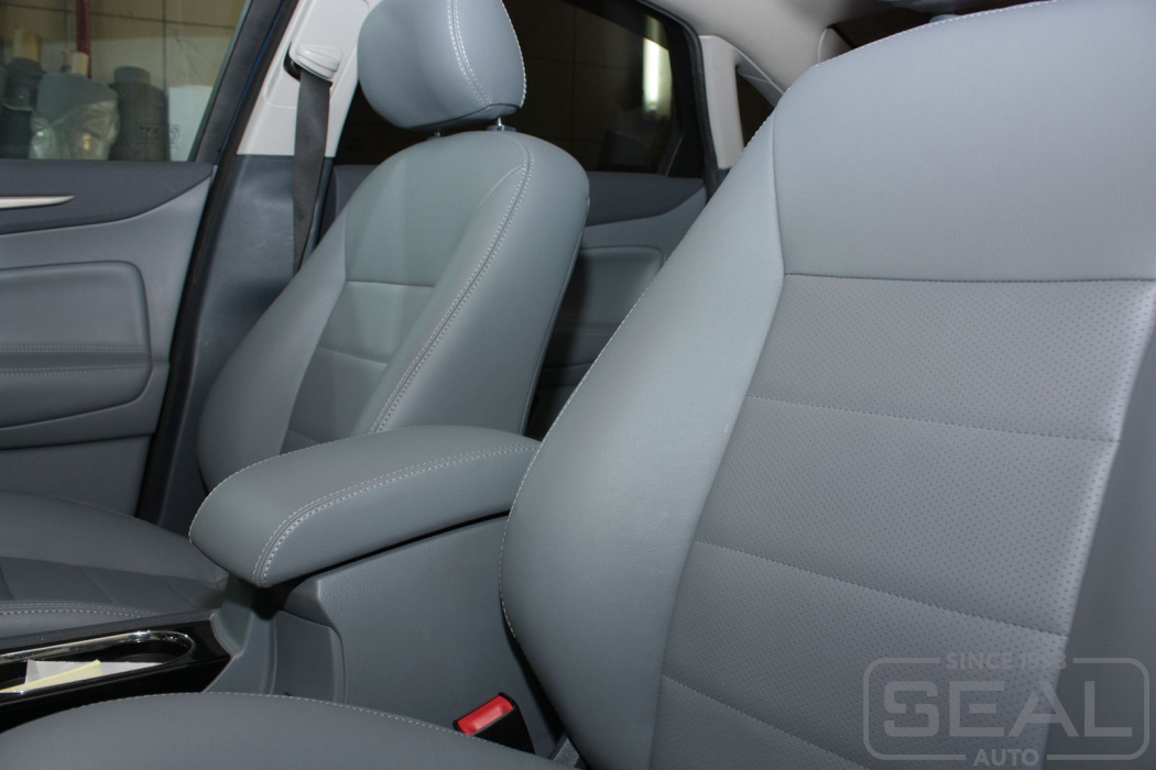 Обивка сидений, подголовников (5 штук), перетяжка переднего подлокотника - 82.000 рублей.