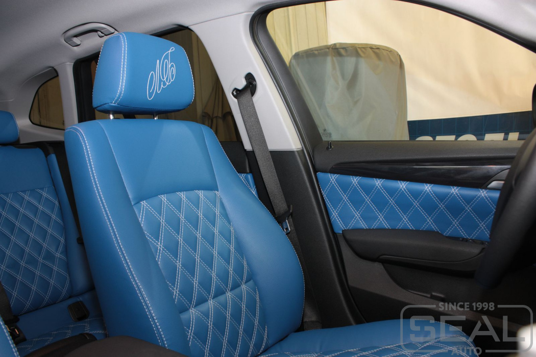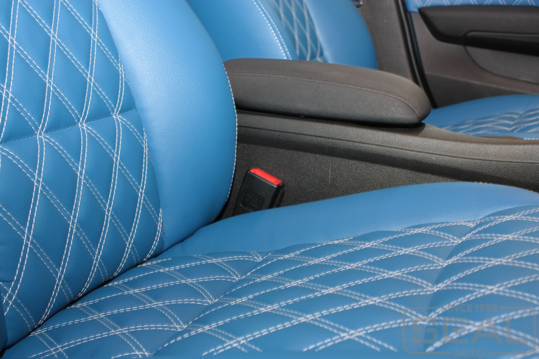 Материал: автомобильная эко кожа Dollaro (артикул 504 , голубой цвет).