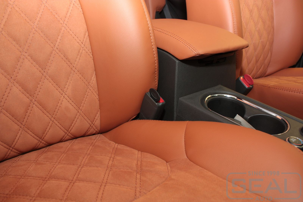 Перетяжка сидений, подголовников, переднего подлокотника - 86.000 рублей.