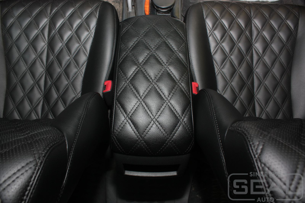 Перетяжка сидений, всех подголовников и подлокотника - 82.000 рублей.
