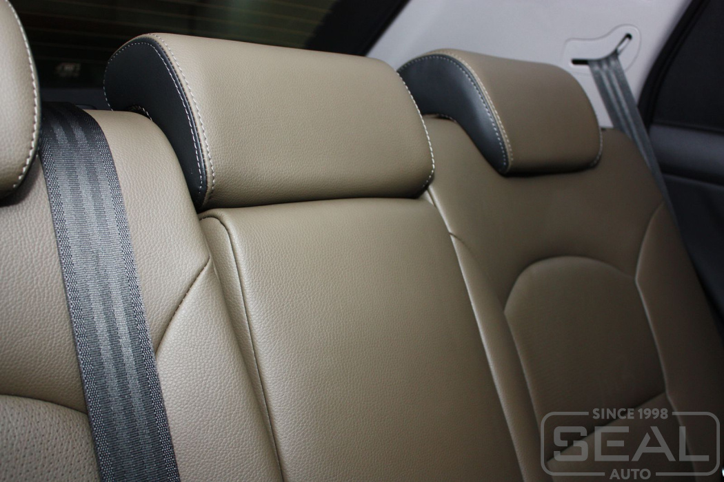 Перетяжка сидений и подголовников (5 штук), перетяжка подлокотника - 85.000 рублей.
