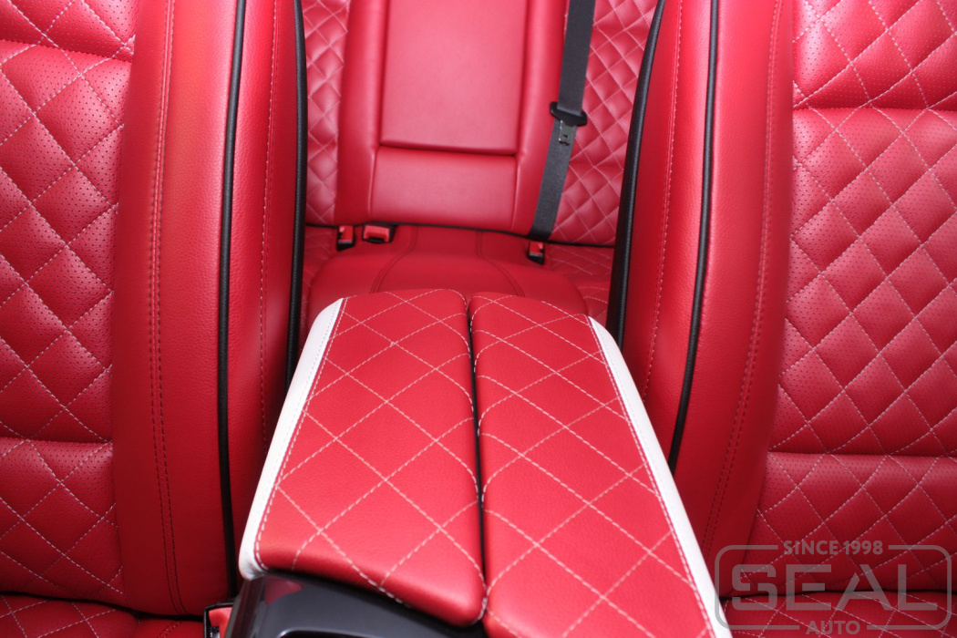Перетяжка всех сидений, подголовников, перетяжка заднего подлокотника - 82.000 рублей.