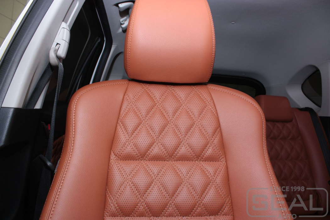 Обивка кожей сидений, перетяжка подголовников, обивка подлокотников - 83.000 рублей.