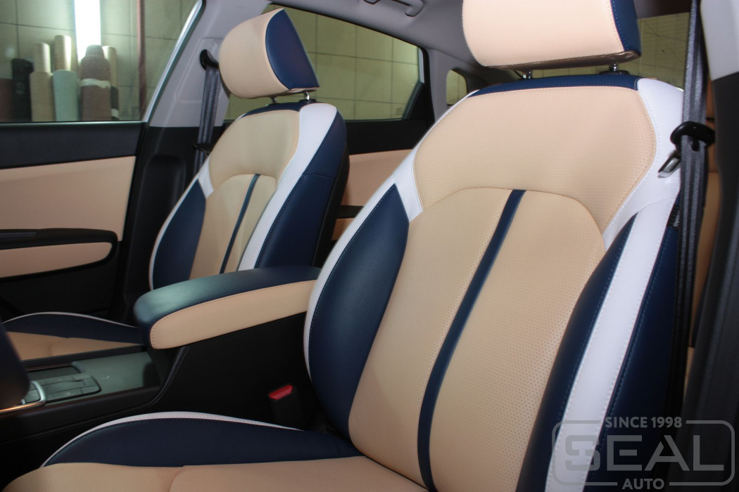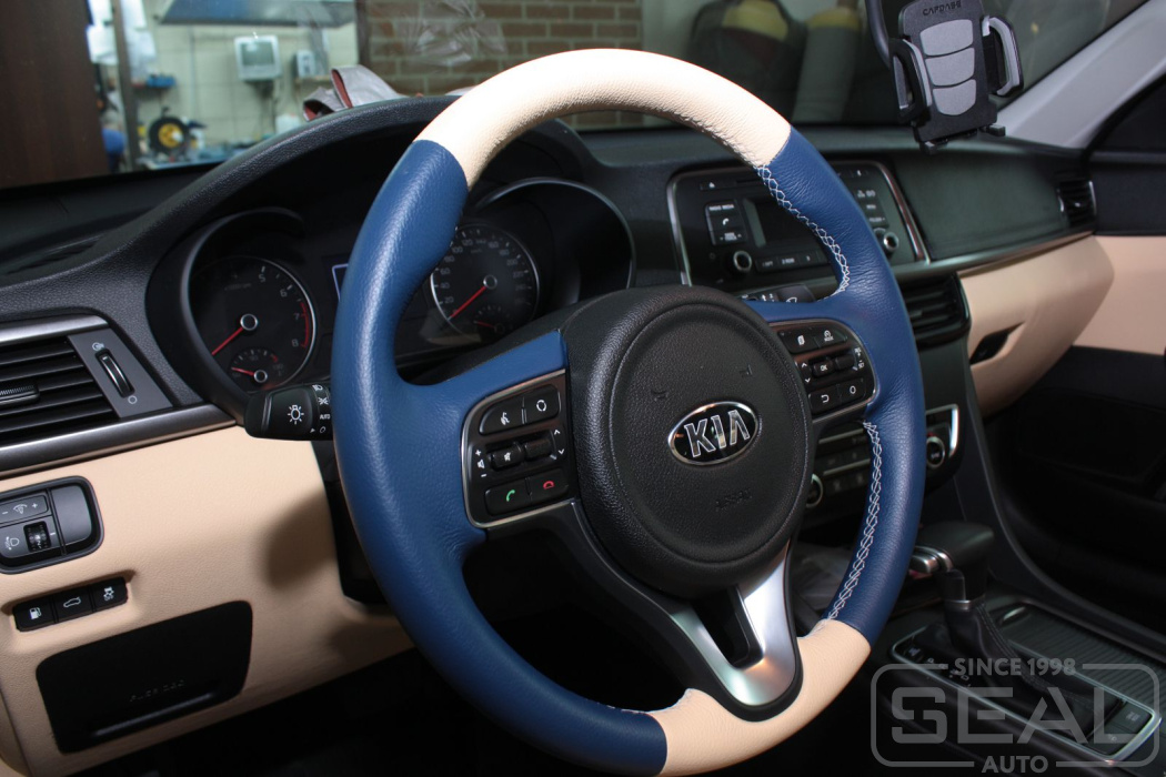 Работа по пошиву кожаного салона Киа Оптима (3-е поколение).