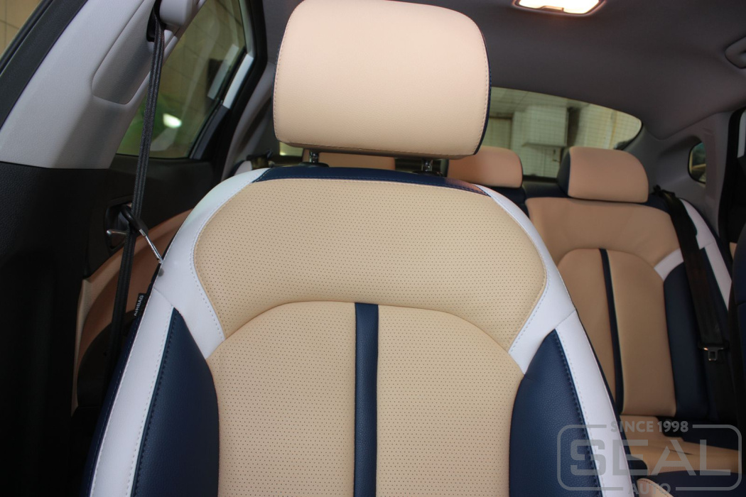 Перетяжка пластика передних сидений (2 штуки) - 26.000 рублей.
