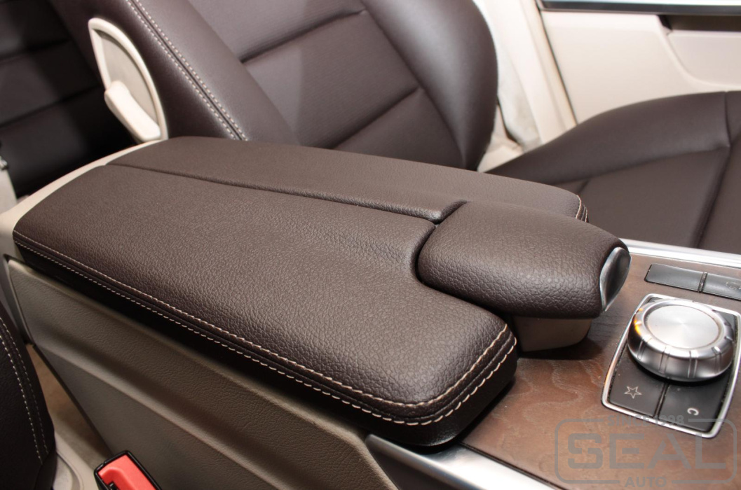Перетяжка кожей сидений, подголовников (5 шт) и заднего подлокотника - 84.000 рублей.