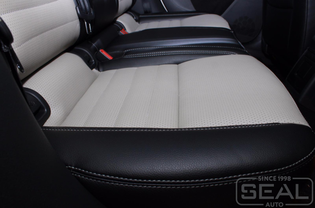 Перетяжка сидений, подголовников и переднего подлокотника - 82.000 рублей.