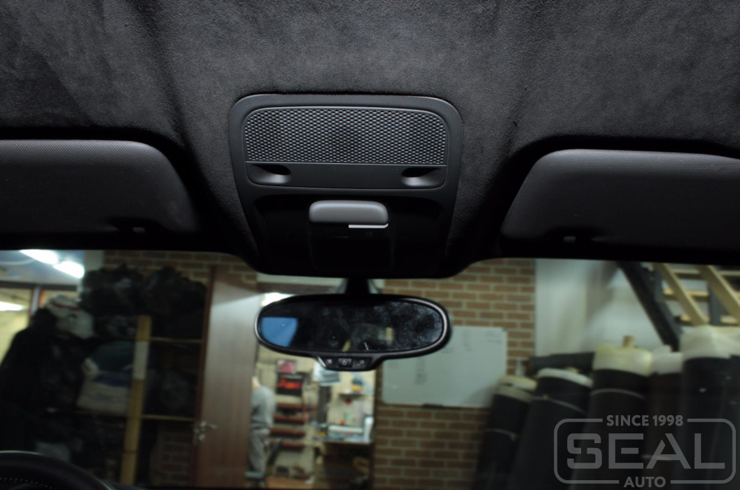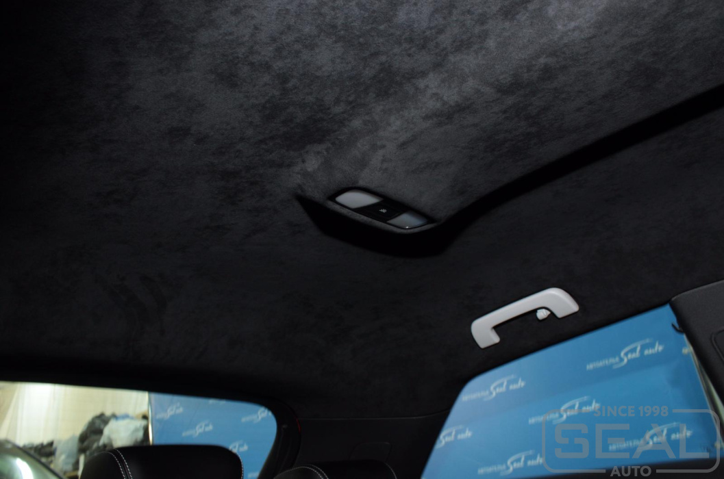 Перетяжка потолка алькантарой для автомобиля Ауди А3.