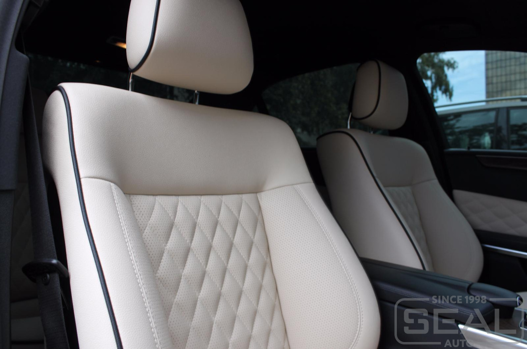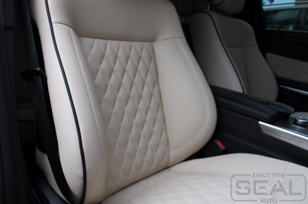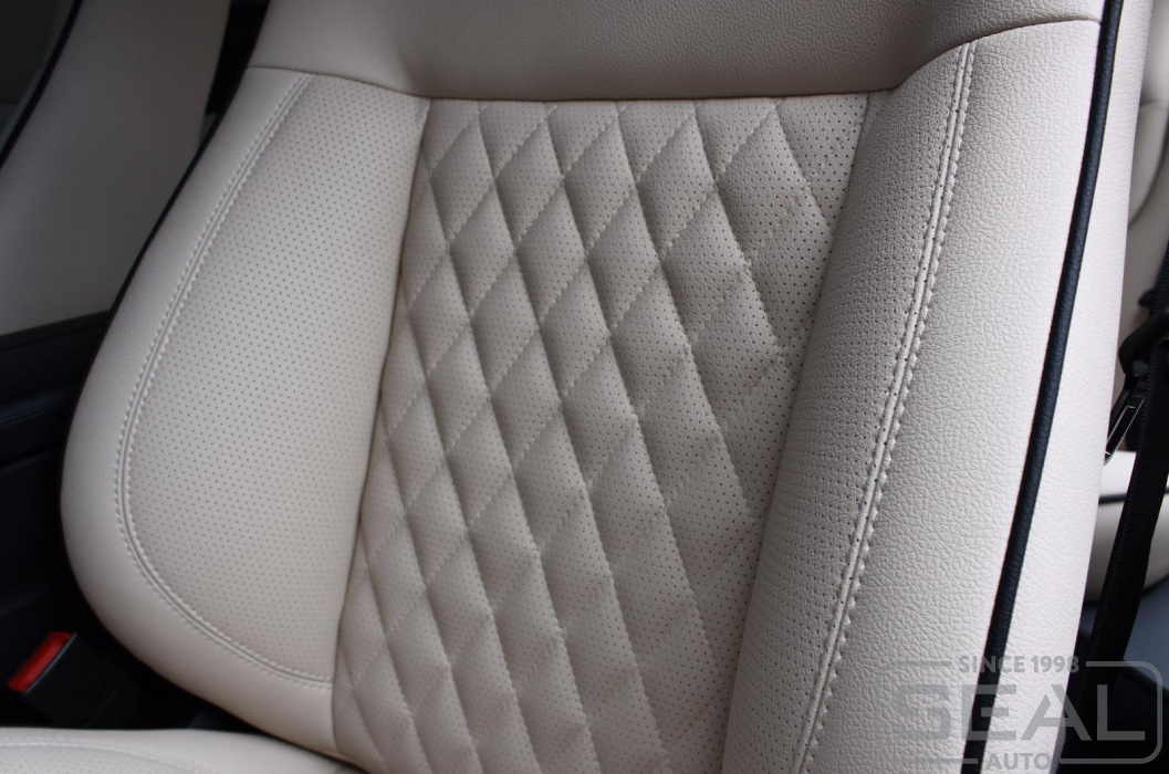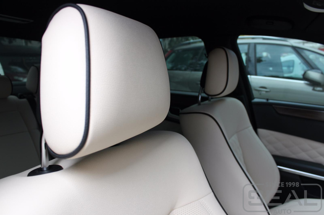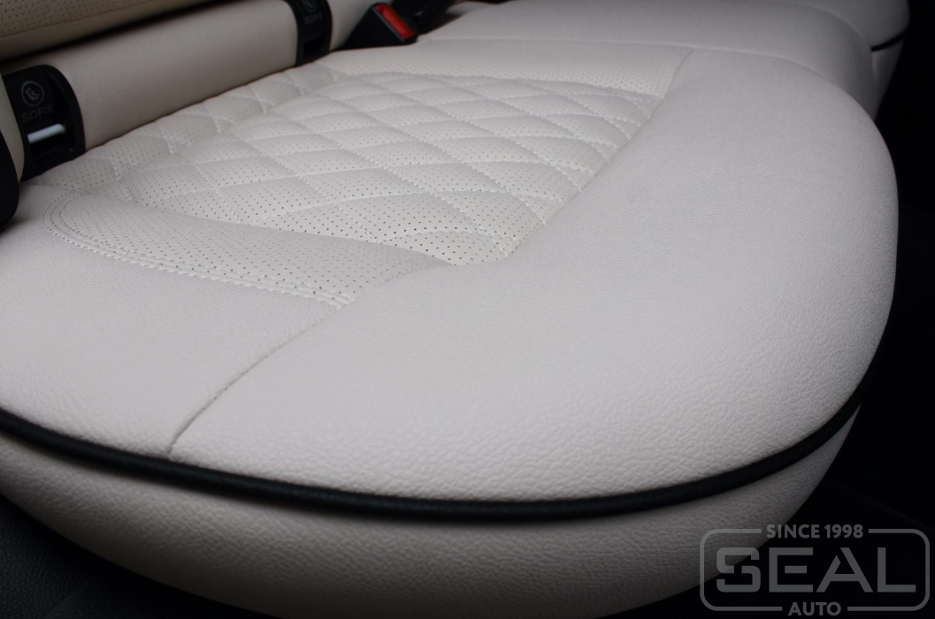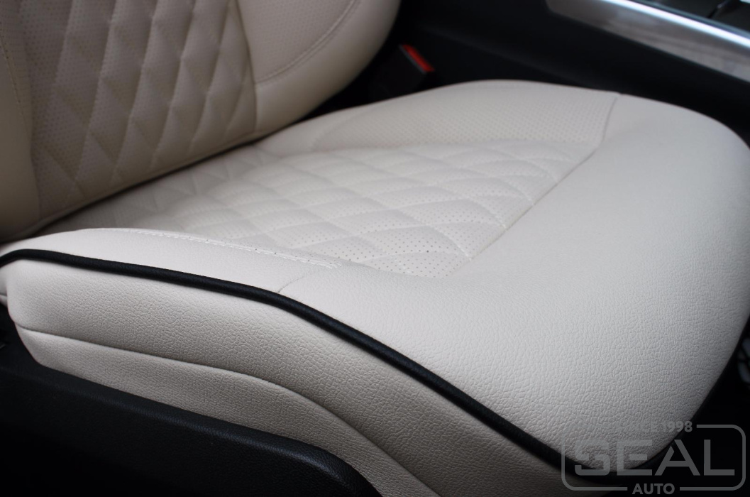 Перетяжка кожей сидений, подголовников (5 штуки) и заднего подлокотника - 84.000 рублей.