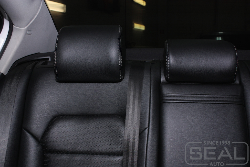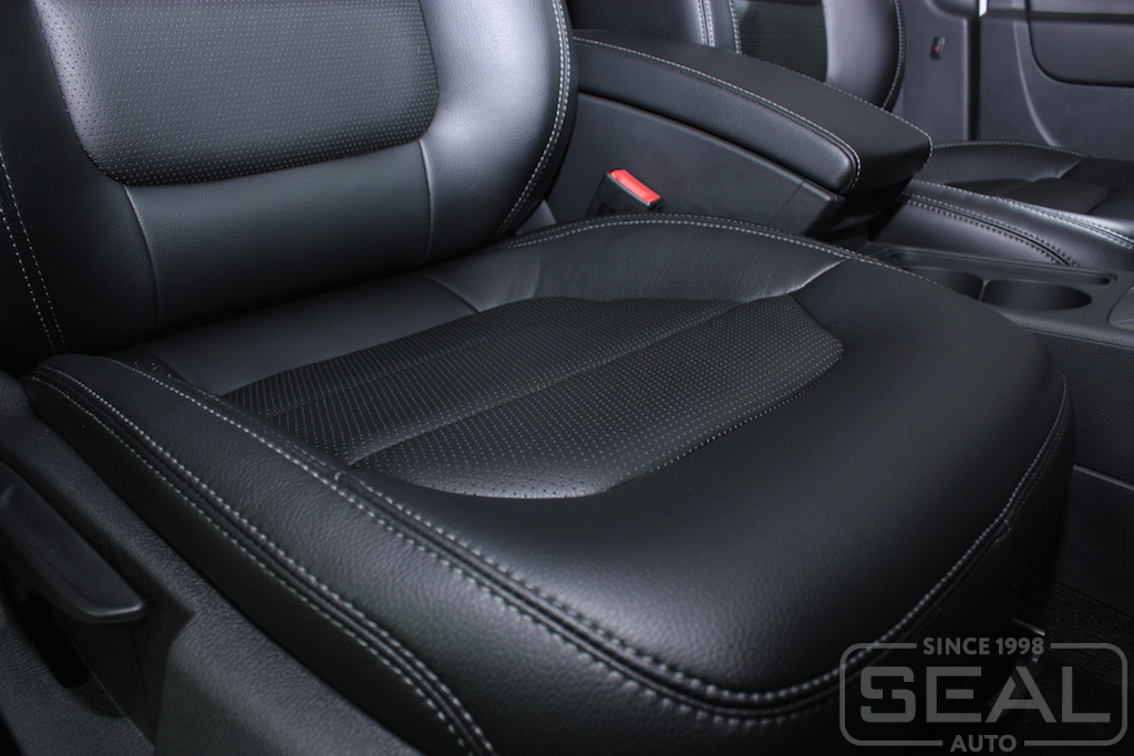 Перетяжка сидений, всех подголовников и переднего подлокотника - 82.000 рублей.