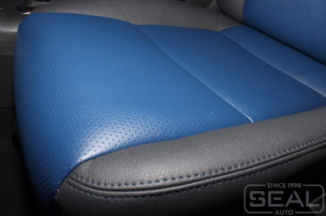 Перетяжка кожей сидений, всех подголовников и переднего подлокотника - 82.000 рублей.