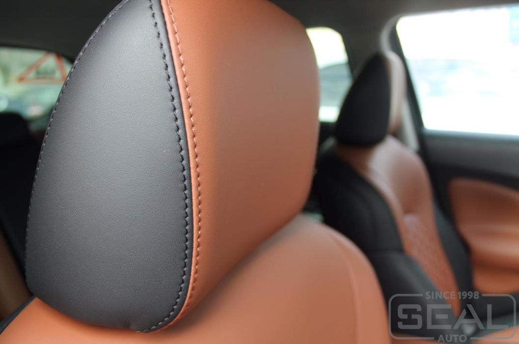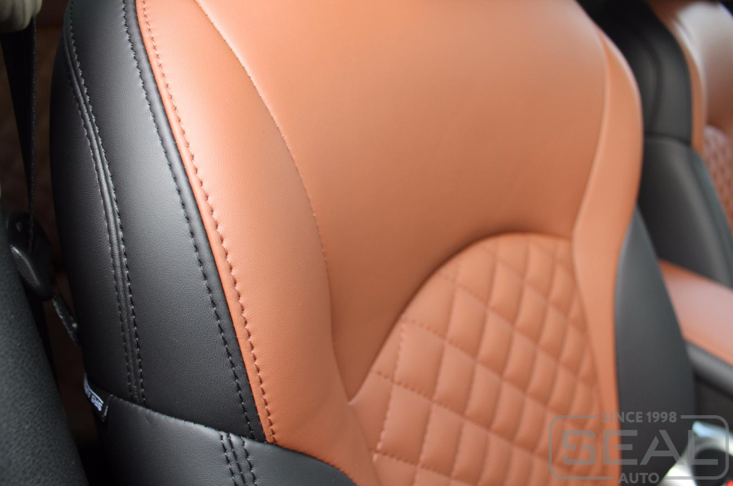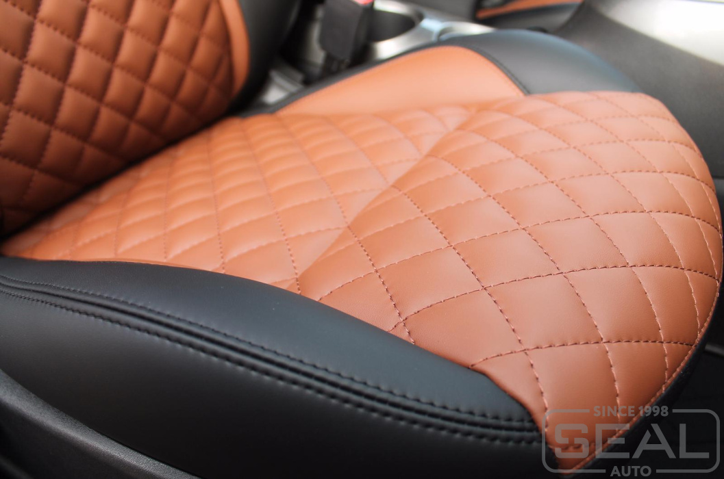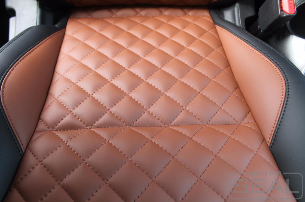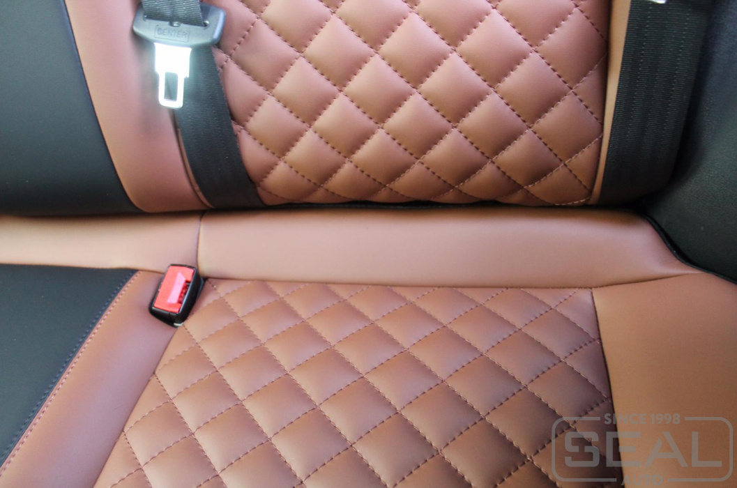 Перетяжка сидений, подголовников и переднего подлокотника - 86.000 рублей.